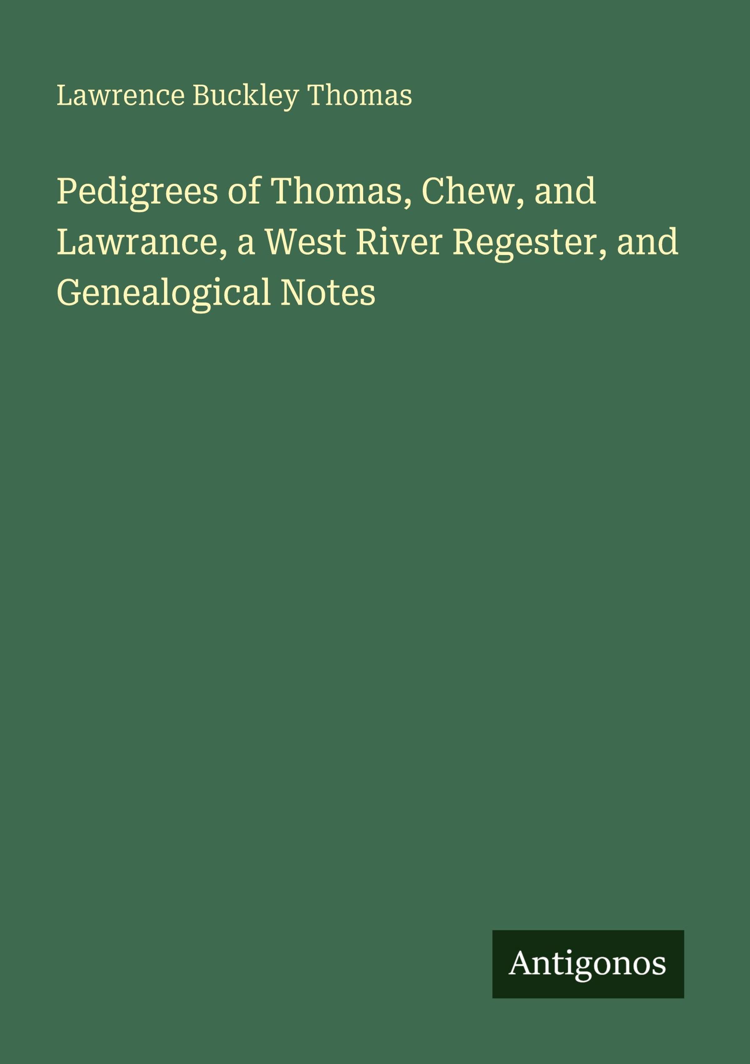 Pedigrees of Thomas, Chew, and Lawrance, a West River Regester, and Genealogical Notes