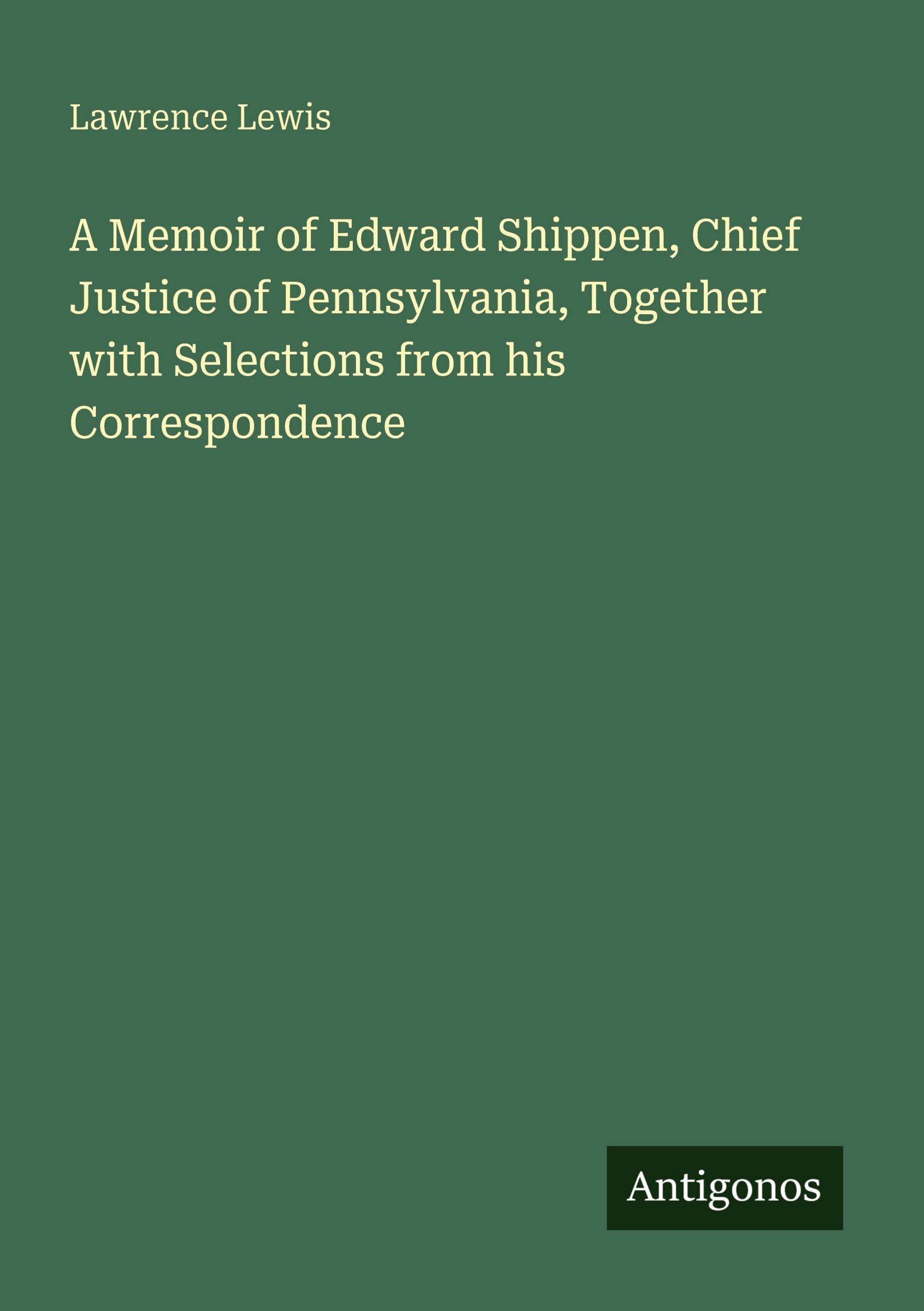 A Memoir of Edward Shippen, Chief Justice of Pennsylvania, Together with Selections from his Correspondence