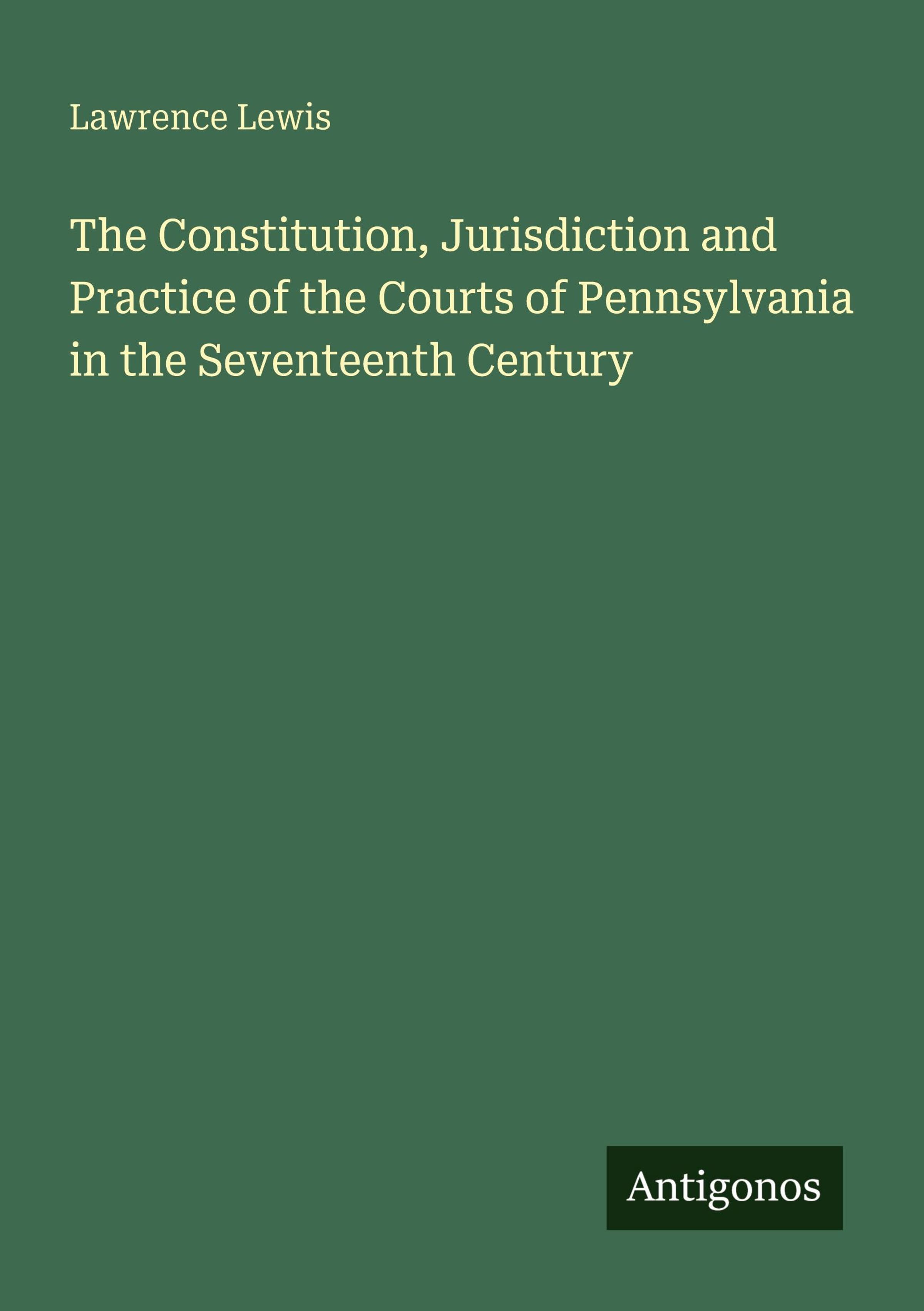 Lawrence Lewis: The Constitution, Jurisdiction and Practice of the Courts of Pennsylvania in the Seventeenth..., Kartoniert / Broschiert
