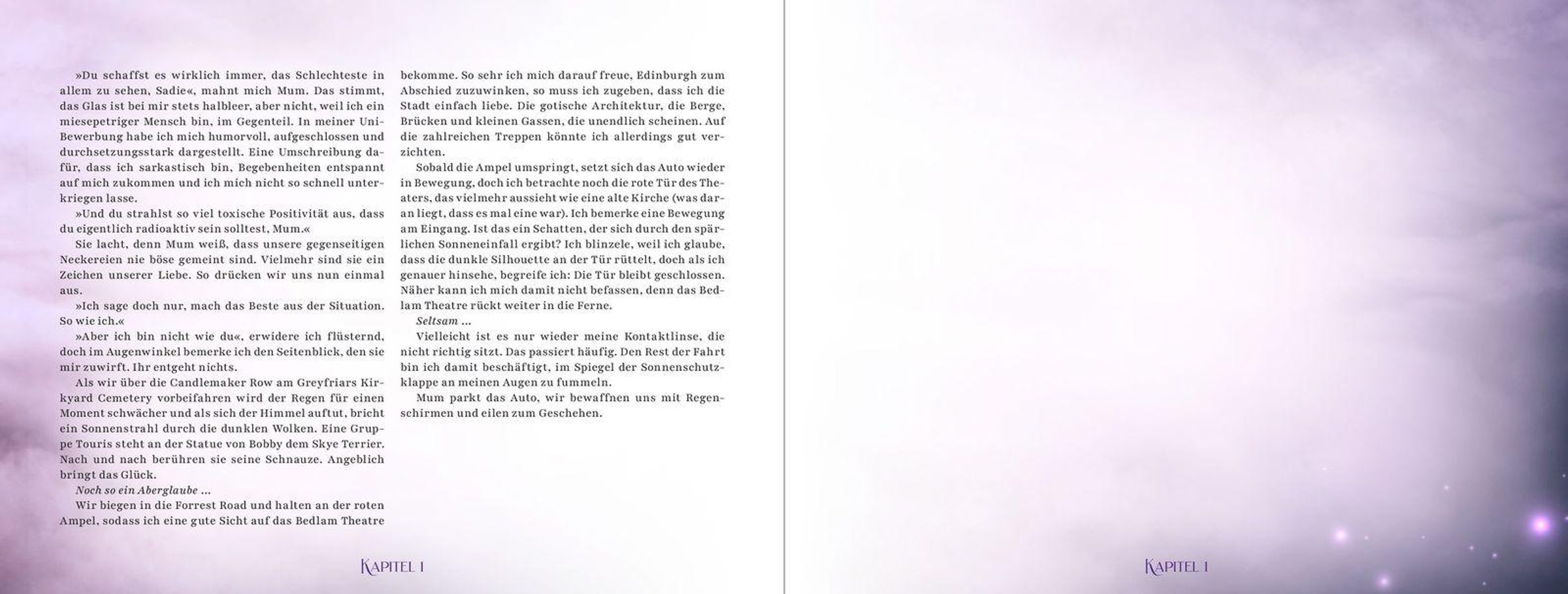Sadie Moore glaubt nicht an Magie - bis eine düstere Vision sie an die University of the Enchanted führt. Versteckt in den schattigen Gewölben einer alten Basilika bei Edinburgh, muss sie lernen, ihre nekromantischen Kräfte zu beherrschen. Dabei verdreht ihr ausgerechnet Finley Clark den Kopf - ein charmanter Exorzist mit eigenen Geheimnissen. Doch während es zwischen den beiden gewaltig knistert, zieht eine verhängnisvolle Verschwörung auf, die ihre Welt zu vernichten droht.