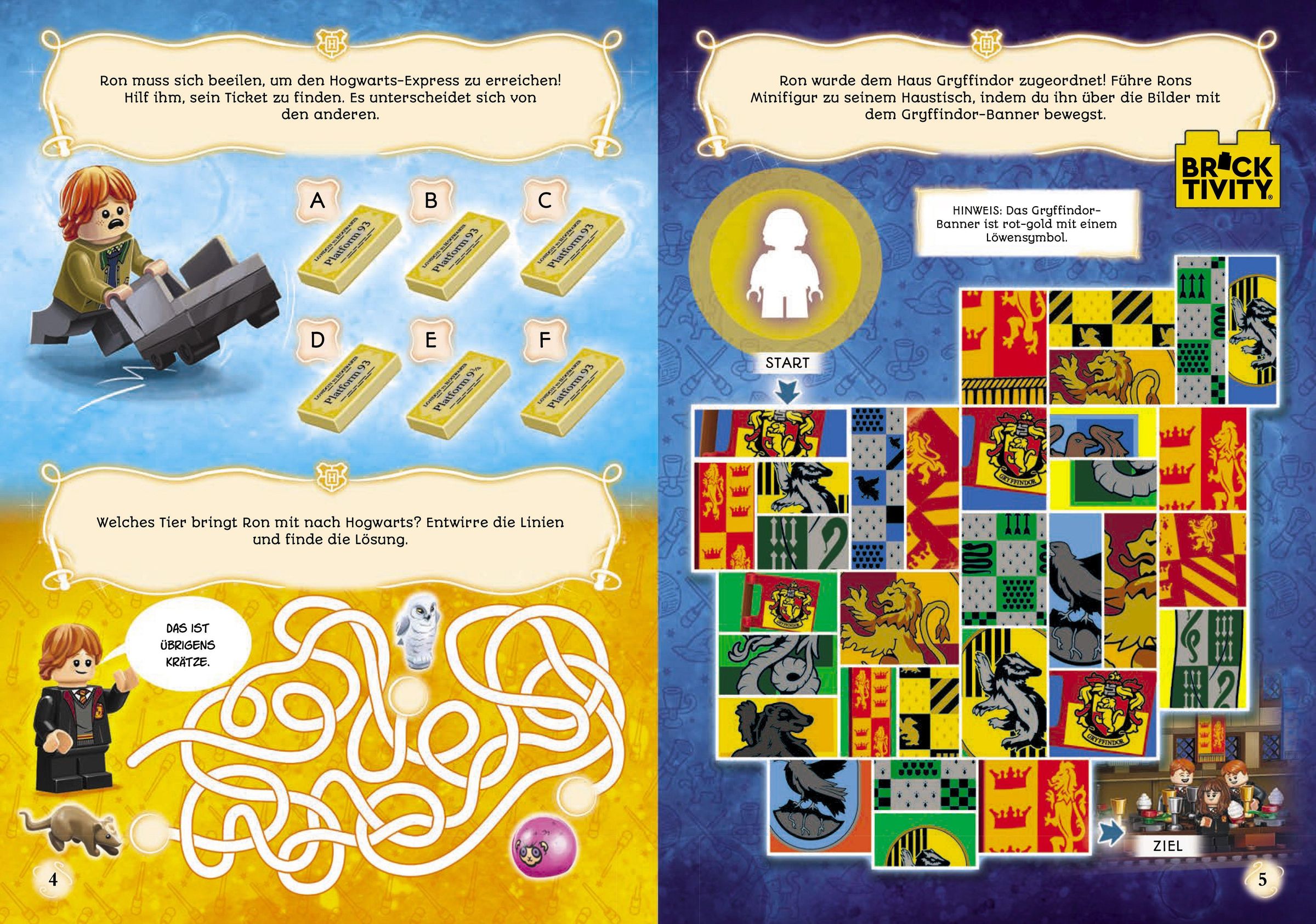 Wer schon immer mal Schüler oder Schülerin in Hogwarts sein wollte, kann mit diesem neuen Rätselbuch Träume wahr werden lassen. Knifflige Rätselmissionen rund um Harry Potter(TM) und seine Freunde entführen Fans des berühmten Zauberers in eine Welt voller Magie. Leser und Leserinnen können mit dem beliebten Gryffindor-Schüler Ron zahlreiche Abenteuer auf handillustrierten Seiten erleben, die mit der enthaltenen LEGO® Minifigur nachgespielt werden können.