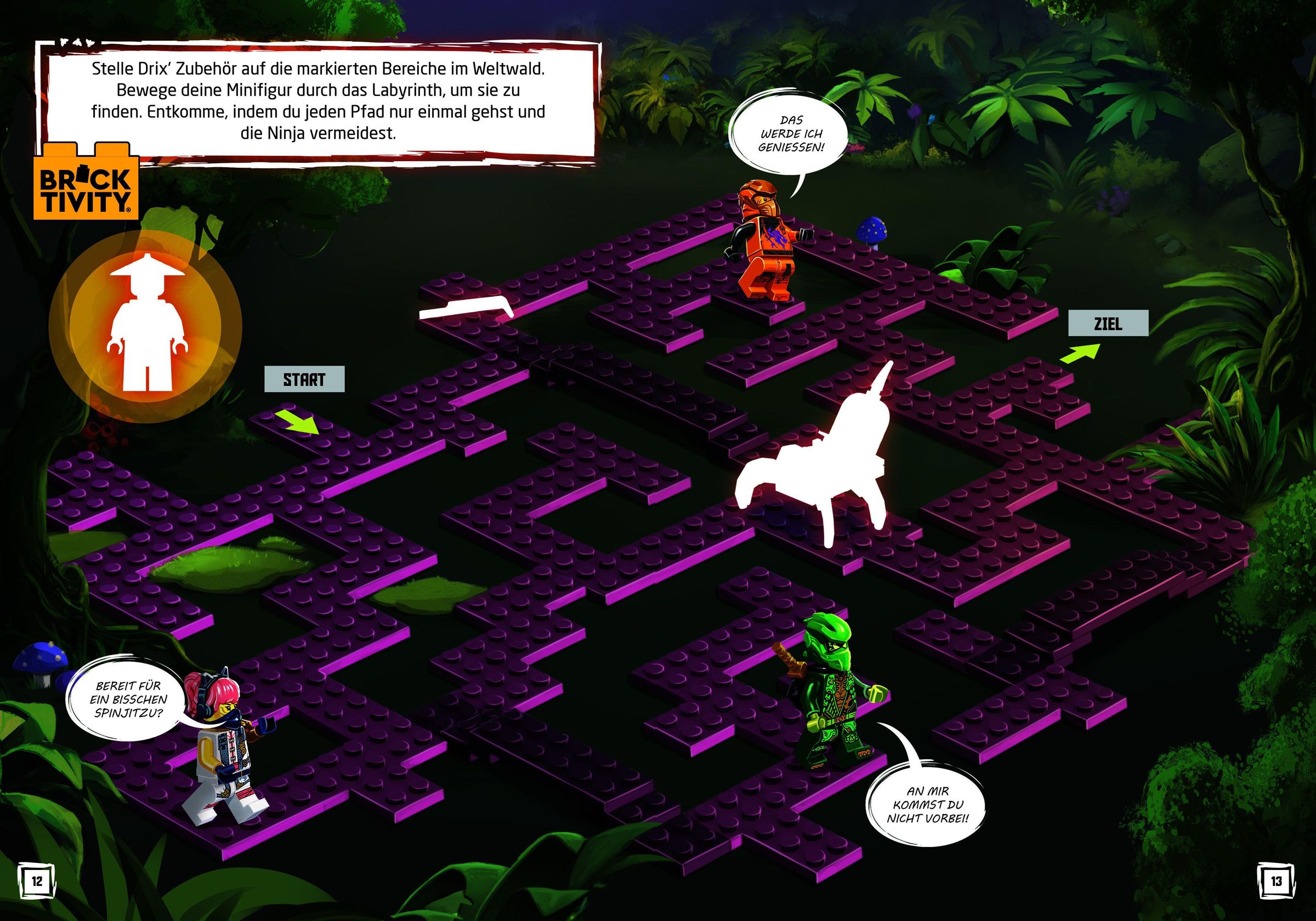 Drix, Elementarmeister des Schwarms, gehört dieser gefährlichen Gruppe an und plant mit seinem bedrohlichen nsektenschwarm einen Hinterhalt auf die Ninja. Löse aufregende Rätsel, amüsiere dich mit lustigen Comics und Geschichten und entdecke zahlreiche Möglichkeiten, mit deiner Minifigur von Drix und seinem Skorpion-Läufer zu spielen. Kannst du verhindern, dass dieser Bösewicht den Chaosdrachen befreit?