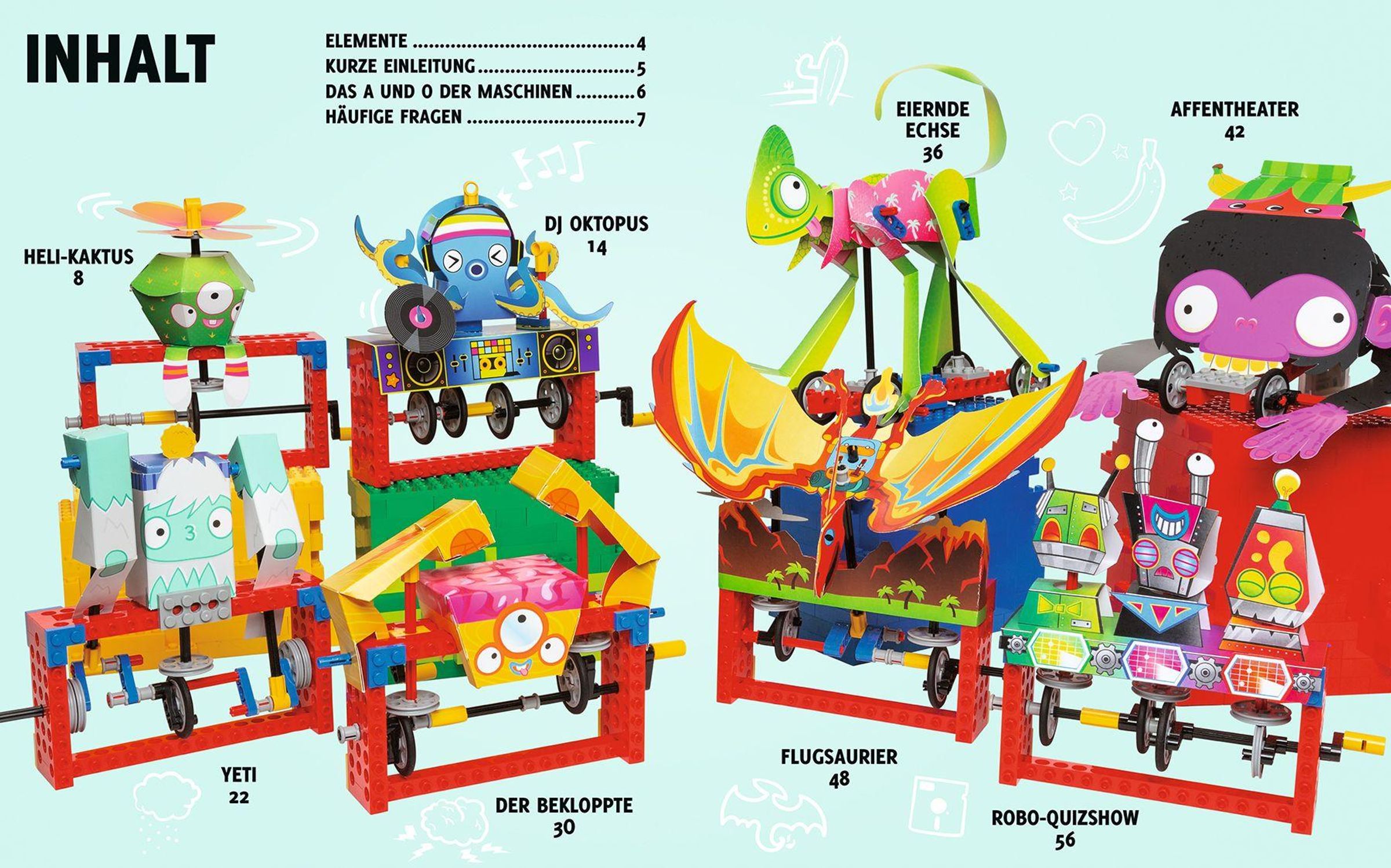 LEGO® Steine machen Naturwissenschaften lebendig! Ob ein Flugsaurier, ein wild gewordener Yeti oder DJ Oktopus - in diesem Buch-Set finden LEGO® Fans Schritt-für-Schritt-Anleitungen für 8 actionreiche Maschinen. Einfach die LEGO® Teile, wie in der Anleitung beschrieben, zusammenstecken und die Konstruktionen durch die vorgestanzten Pappelemente ergänzen. Fertig sind die Roboter, die mithilfe einer Kurbel ihre Flügel schwingen, ihre Pudelmütze anheben oder sich wild zur Musik bewegen können. So lernen die Kinder jede Menge Wissenswertes zum Konstruieren von Maschinen, und physikalische Gesetze werden spielerisch erlebbar.
