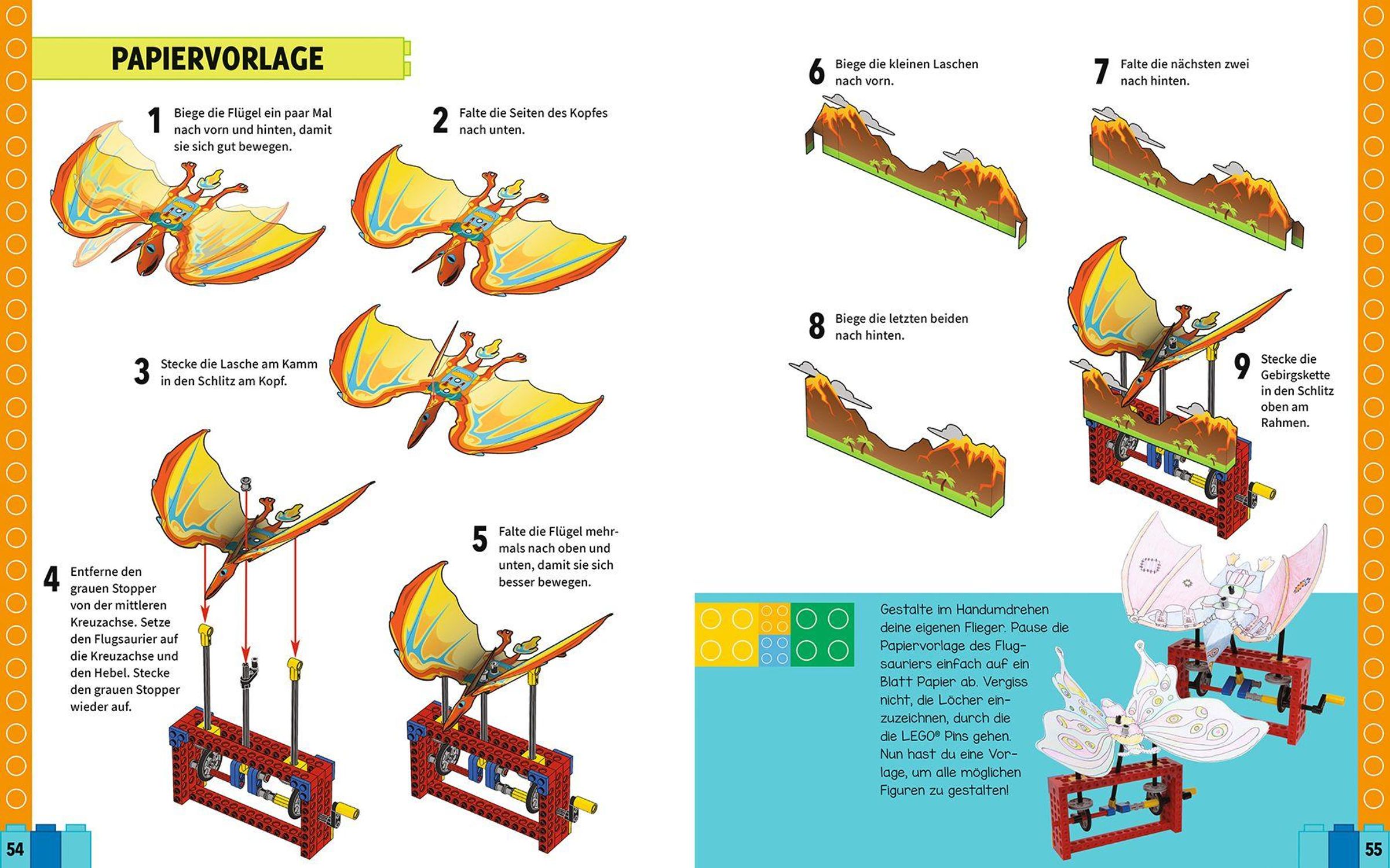 - Durchgehend vierfarbig; Box 25,5 x 25,7 x 4,4 cm; Buch (25,5 x 20,4 cm) mit 64 Seiten; 62 LEGO-Elemente; 12 Papierbögen mit vorgestanzten Teilen