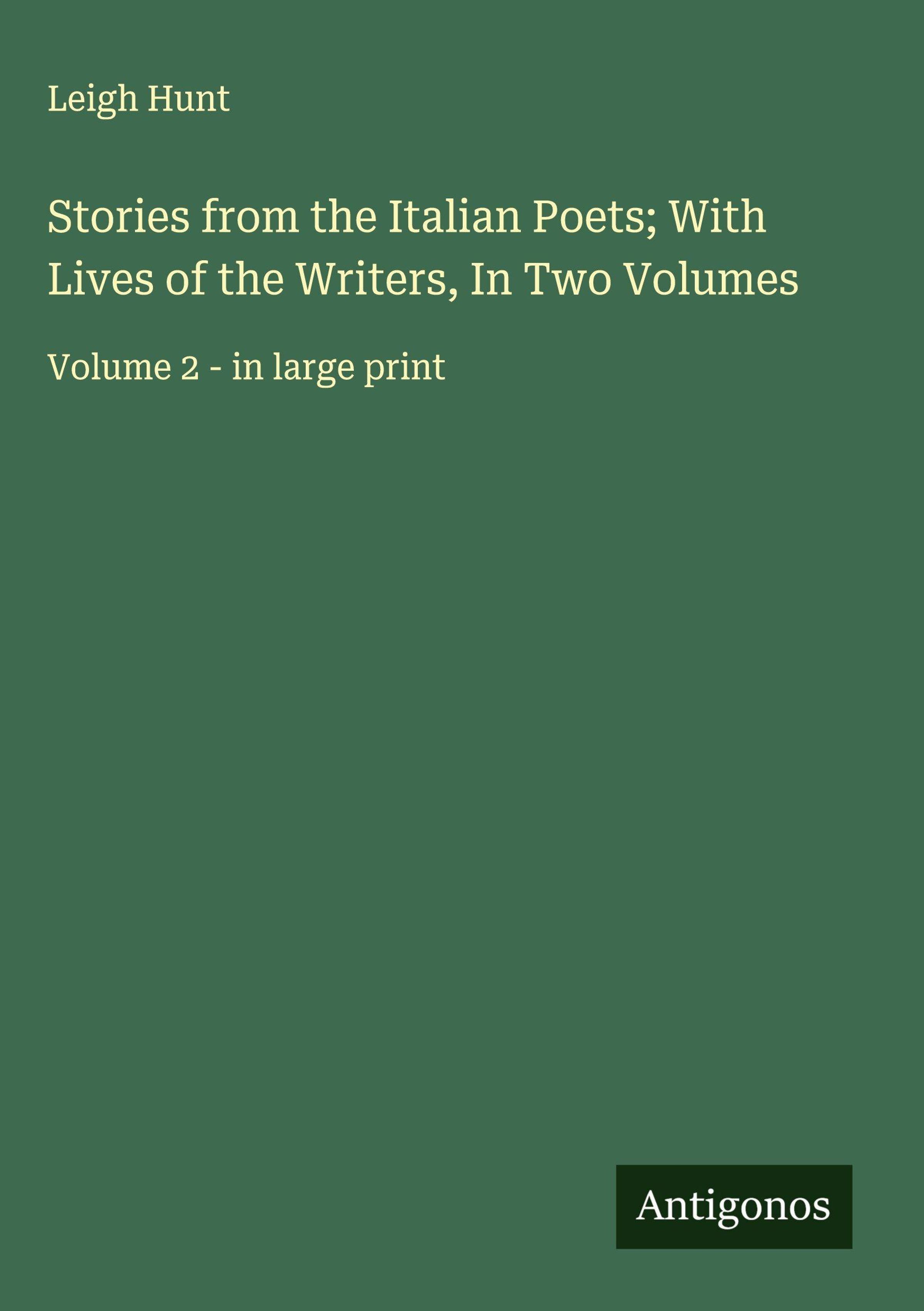 Leigh Hunt: Stories from the Italian Poets; With Lives of the Writers, In Two Volumes, Gebunden