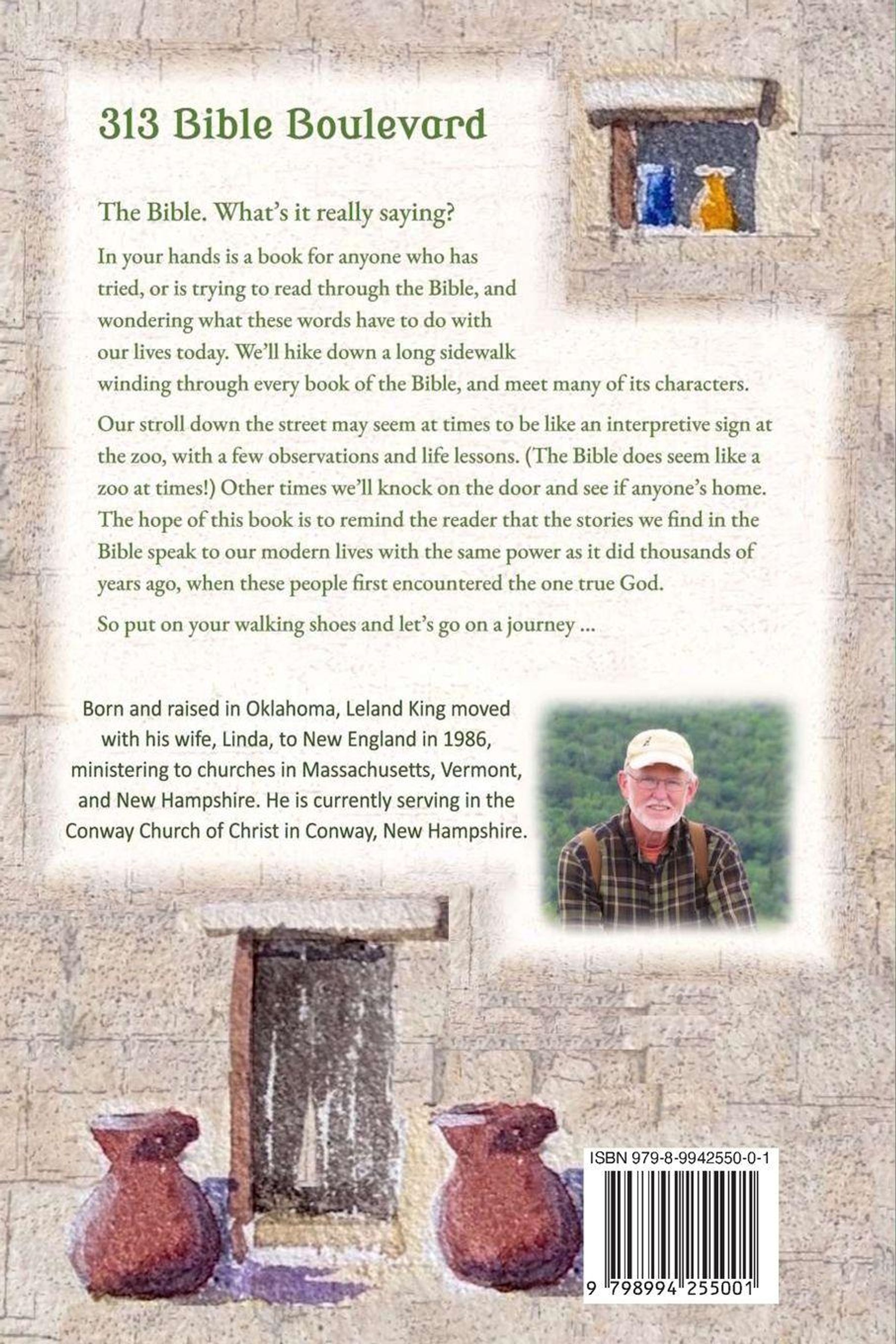 313 Bible Boulevard is a set of 313 devotional thoughts. These devotionals will take the reader down the long avenue of Scripture, spending a bit of time in each book. The thoughts reflect on how God worked among the people, and how he is still working in our lives today. These devotional stops along the sidewalk will challenge the reader's faith, encourage all to deeper study, and help piece together the often-confusing aspects of this big book we call the Bible.