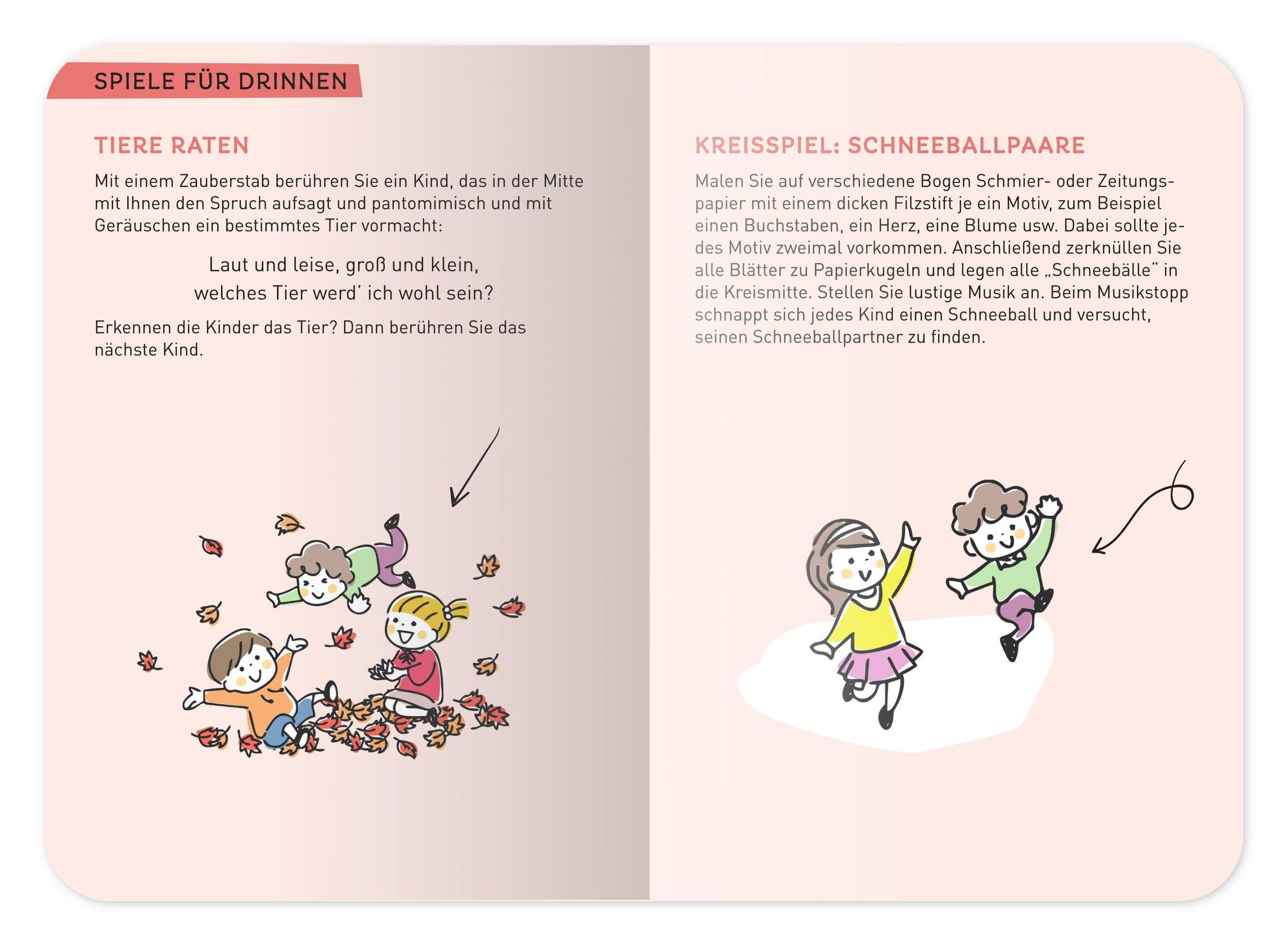 Neben dem Kalendarium finden sich im Terminplaner zahlreiche Spielideen für unterwegs, die sich spontan im Kindergarten oder auf Ausflügen einsetzen lassen - perfekt für kleine Pausen zwischendurch.