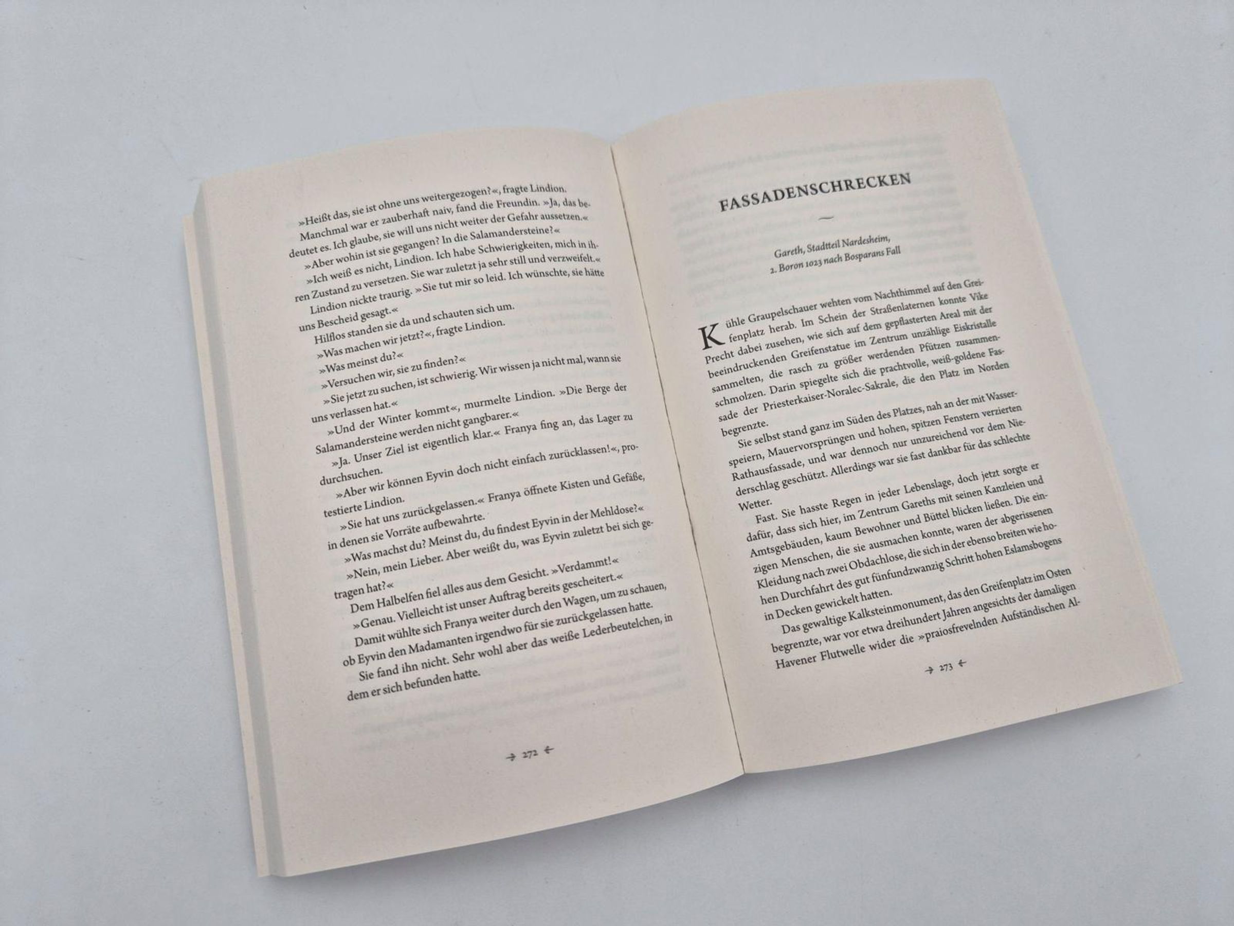 'Ein gewaltiges Fantasy-Spektakel-Feuerwerk (...), das die Herzen von High-Fantasy-Fans höherschlagen lässt.' - Phantastik-Couch. de, über 'Im Schatten Simyalas' Band 1