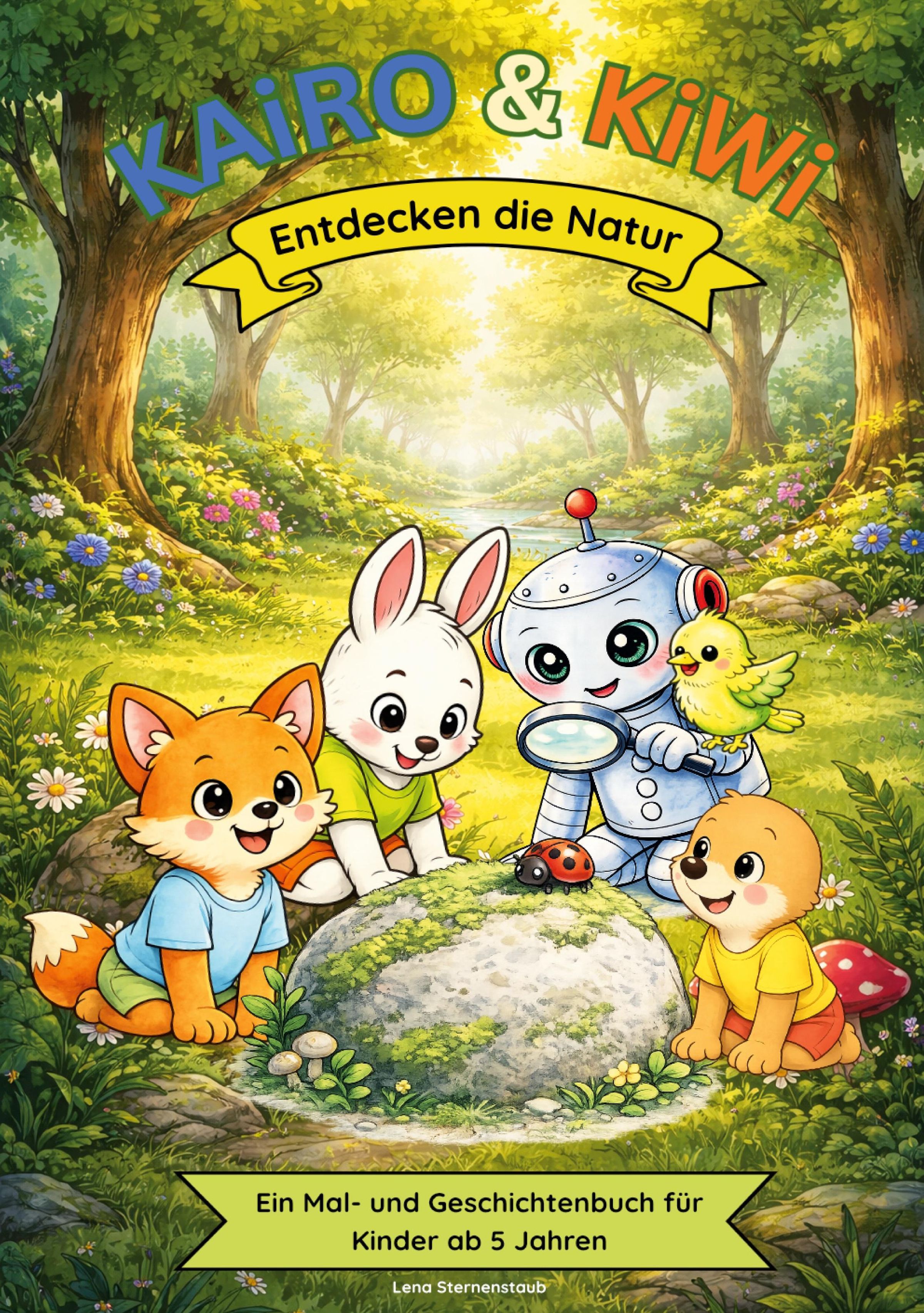 „KAIRO & KiWi: Entdecken die Natur. Ein Mal- und Geschichtenbuch für Kinder ab 5 Jahren.“ Tiere in Waldillustration., Buch