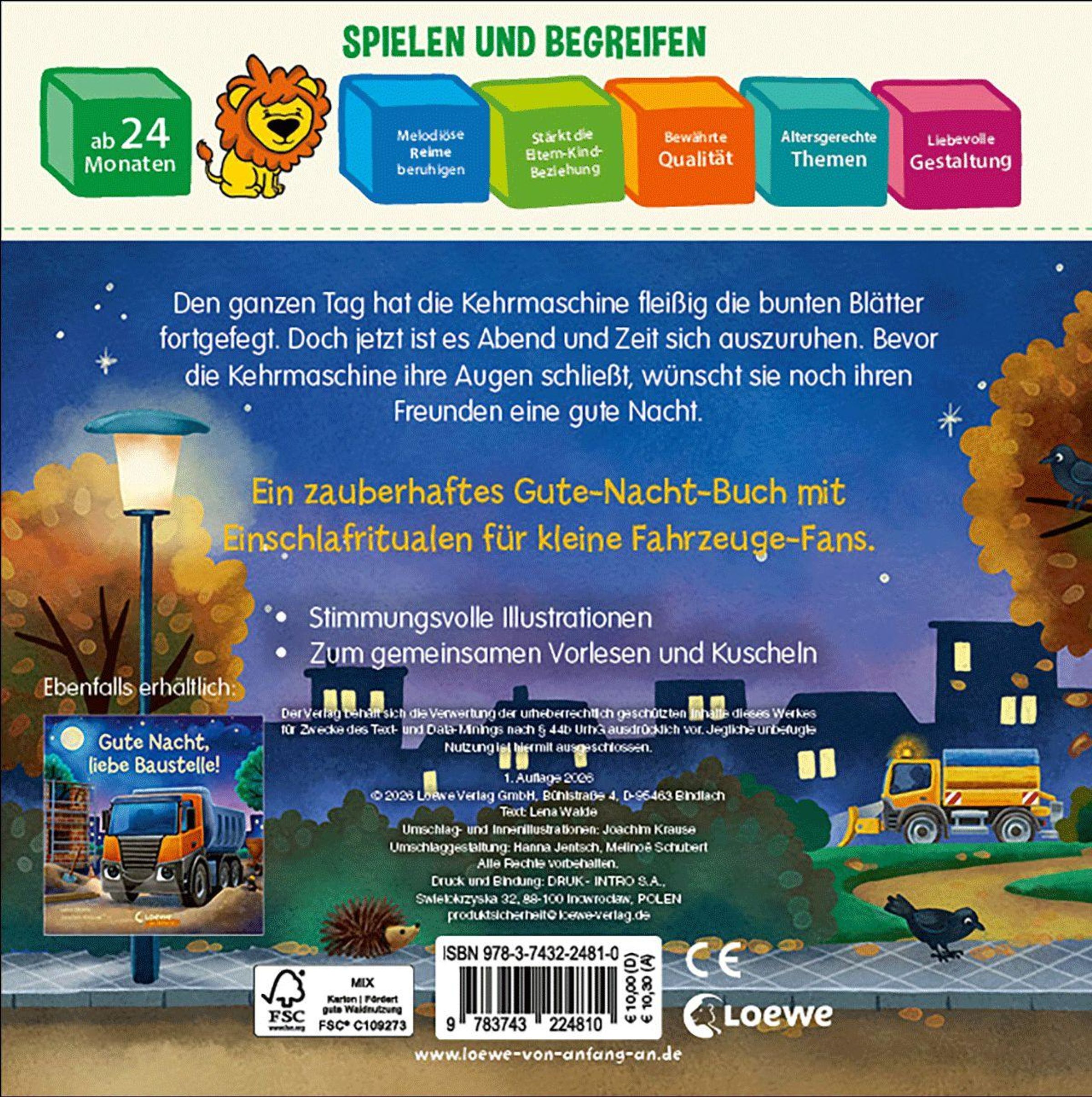 Lena Walde: Gute Nacht, kleine Kehrmaschine!, Pappe