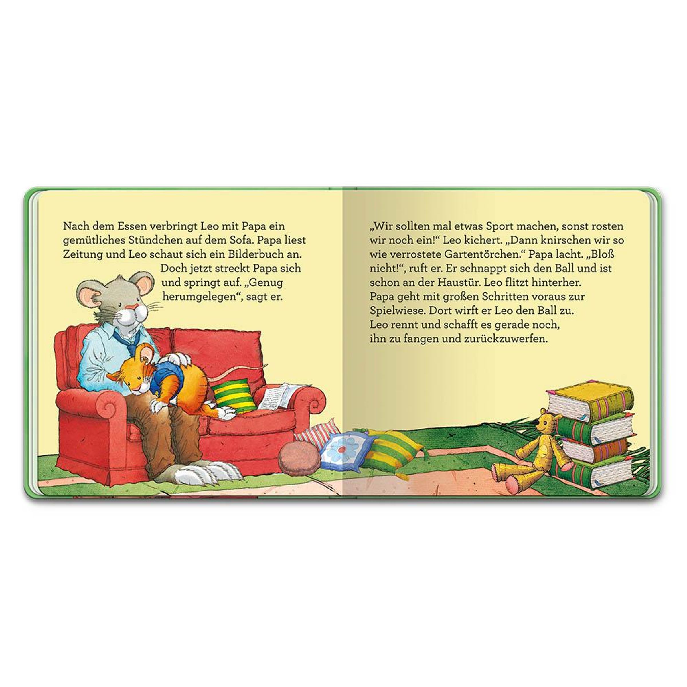 Papa ist der Größte, findet Leo. Wie schön, dass er so viel Zeit mit seiner kleinen Lausemaus verbringt. Egal ob beim Kuscheln auf dem Sofa, auf einer aufregenden Radtour an den See oder beim gemeinsamen Herumalbern im Garten. Mit Papa macht alles mauseviel Spaß! Drei liebevolle Geschichten über die einzigartige Beziehung von Vater und Kind: Ausflug mit Papa - Die Flaschenpost - Die Sportskanonen