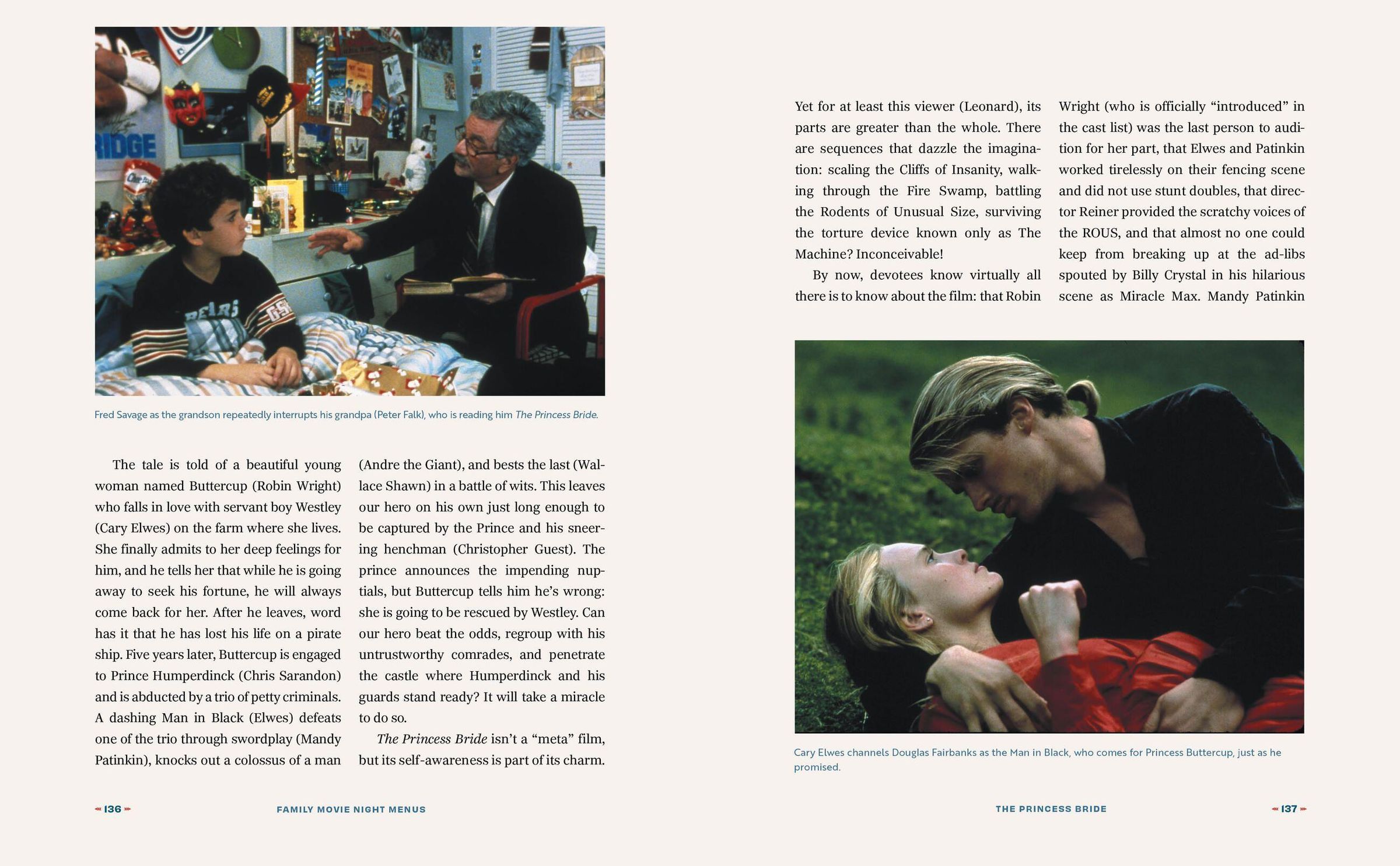 Each entry includes a film profile filled with behind-the-scenes stories about the production, stars, and filmmakers; moments to watch (or watch out) for; recommended further viewing; and a recipe inspired by the film to make together before the credits roll and enjoy while watching. The movies span one silent entry (The Kid ), through classic horror (Bride of Frankenstein ), to legendary stories (The Wizard of Oz ), musicals (The Sound of Music ), can't miss adventures (Star Wars ), and modern must-sees (Harry Potter and the Sorcerer's Stone ).