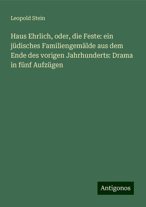 Leopold Stein: Stein, L: Haus Ehrlich, oder, die Feste: ein jüdisches Famil, Fester Einband