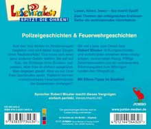 "Kati darf ihre Mutter im Streifenwagen begleiten und wird dabei sogar Zeugin eines Raubüberfalls! Auch Toni ist schnell unterwegs: Er muss sich beeilen, denn seine Fußballmannschaft hat ein wichtiges Spiel. Doch dann geht sein Rad kaputt. Kann ihn der Polizist mit dem Motorrad noch rechtzeitig zum Stadion bringen? Tina soll auf Kaa, die Schlange ihres Bruders, aufpassen. Doch Kaa ist einfach ausgebüxt. Luisa dagegen glaubt, dass es auf Oma Ilses Dachboden spukt. Vielleicht können unerschrockene Feuerwehrmänner die Gespenster