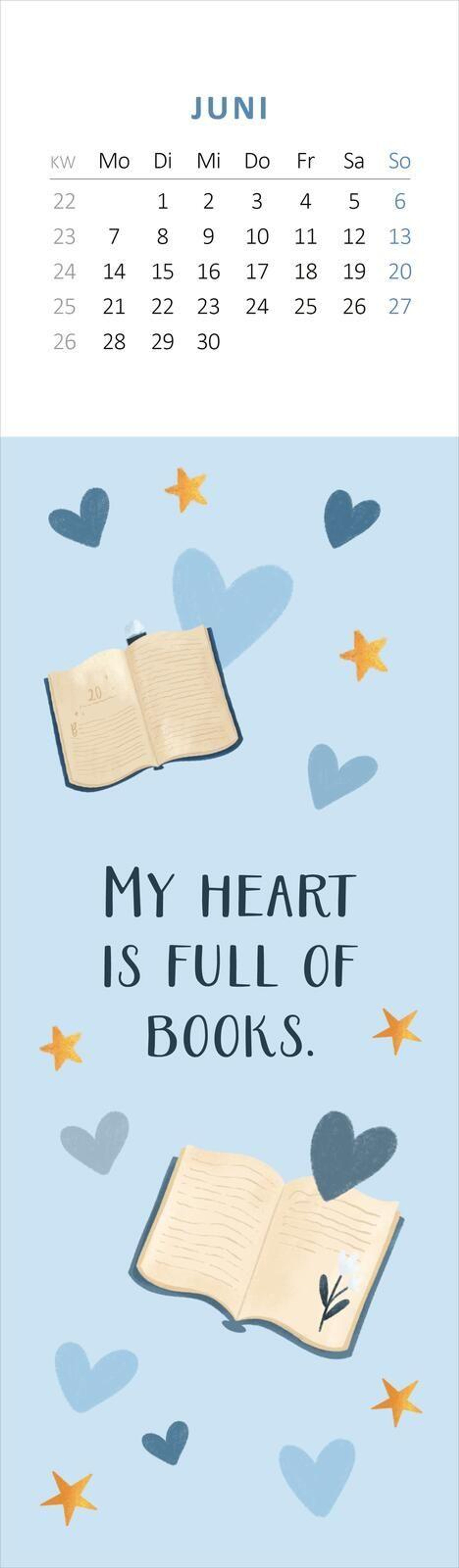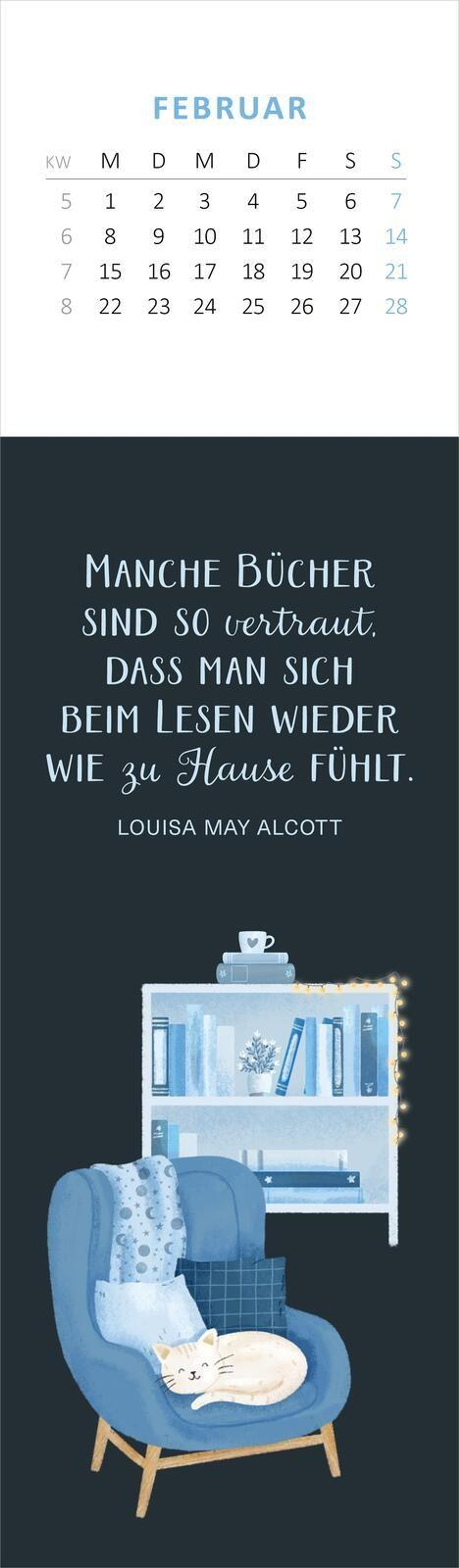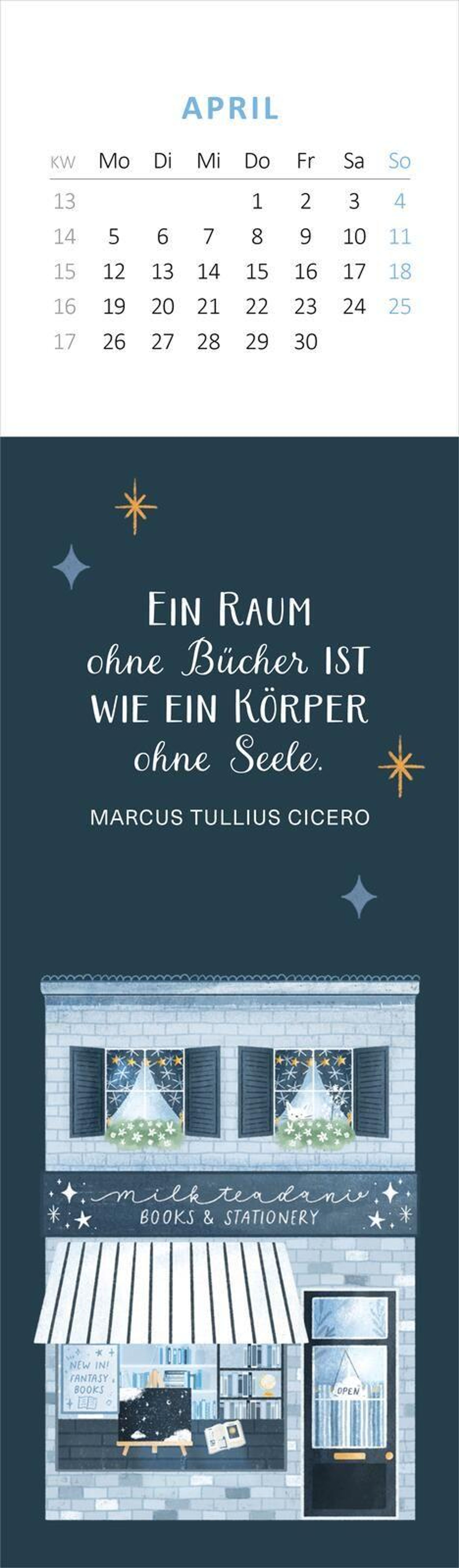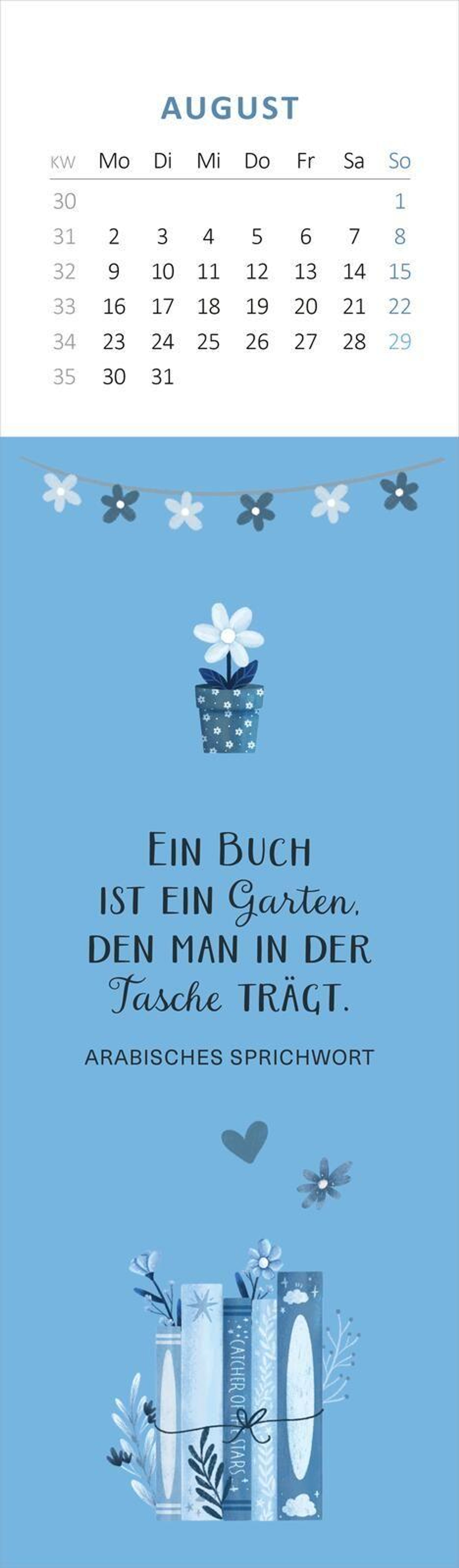 - **Ein Kalender, doppeltes Vergnügen:**12 Lesezeichen (6, 0 x 20, 5 cm) zum Heraustrennen oder Verschenken
