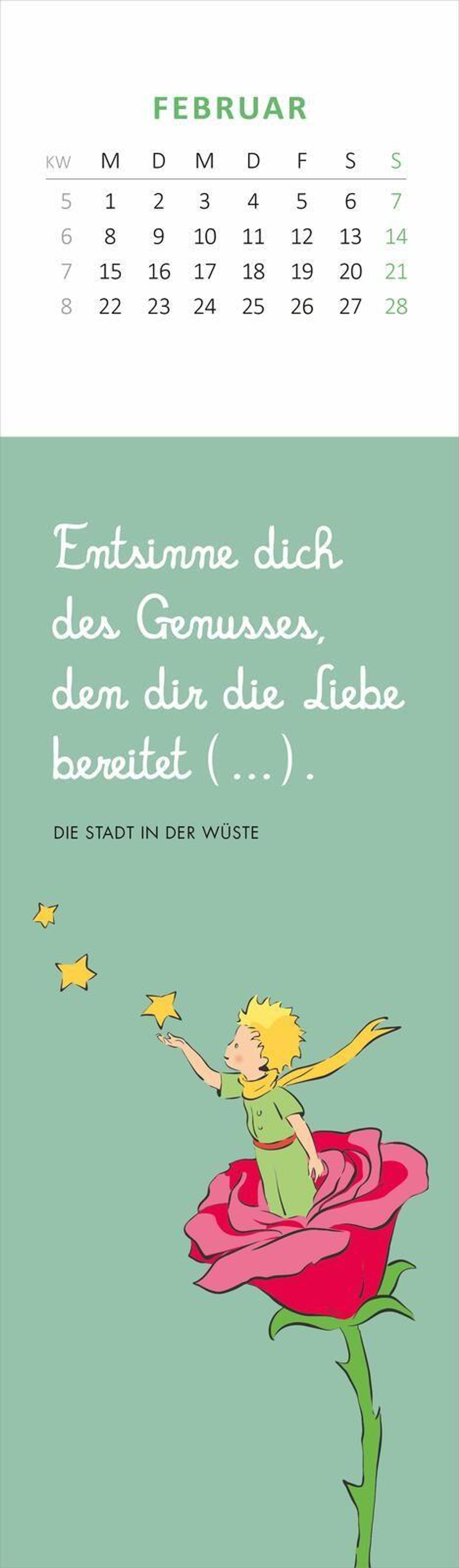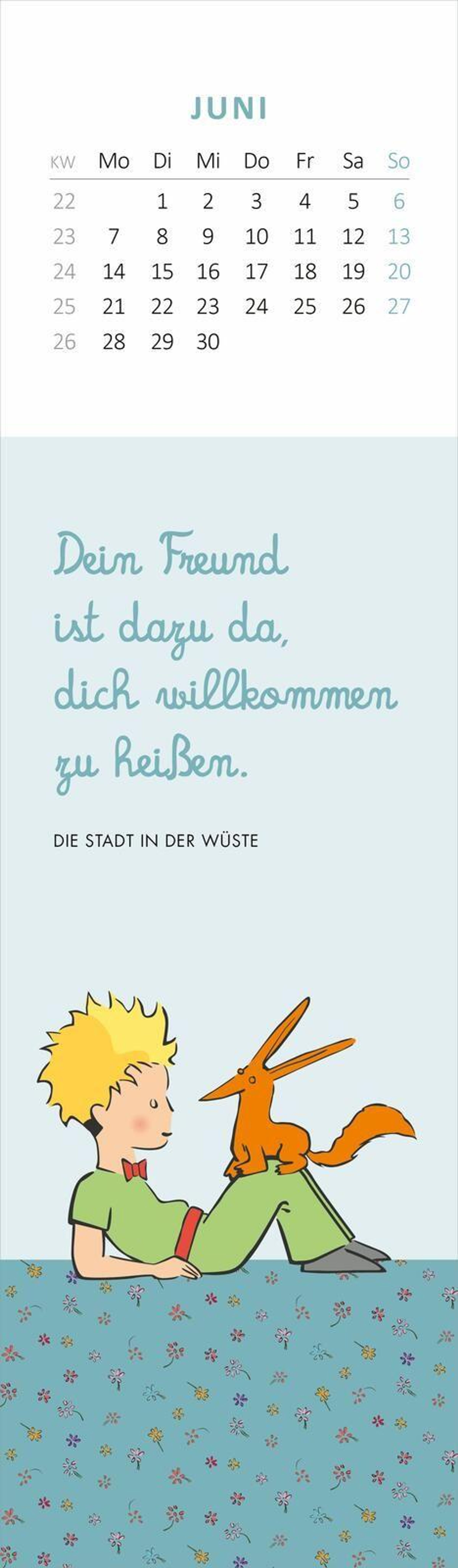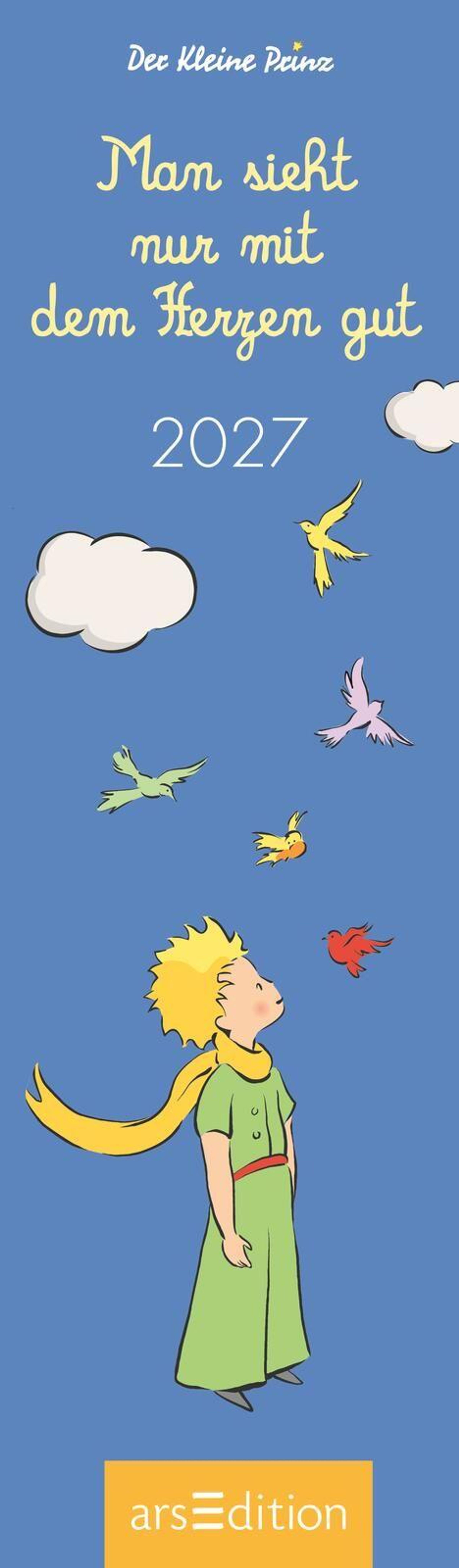 Dieser Monatskalender für 2027 soll dir das ganze Jahr über Freude schenken! Jeden Monat begleitet dich ein stimmungsvolles Motiv aus der Welt des kleinen Prinzen samt einem Zitat des weltbekannten Autors Antoine de Saint-Exupéry, das inspiriert und Glücksmomente weckt. Nach Ablauf des Monats kann das Motiv einfach abgetrennt und als Lesezeichen oder als Dekoration weiterverwendet werden. Der liebevoll gestaltete Kalender findet dank seines schmalen Formats überall einen Platz und eignet sich hervorragend als kleines Geschenk oder Mitbringsel.