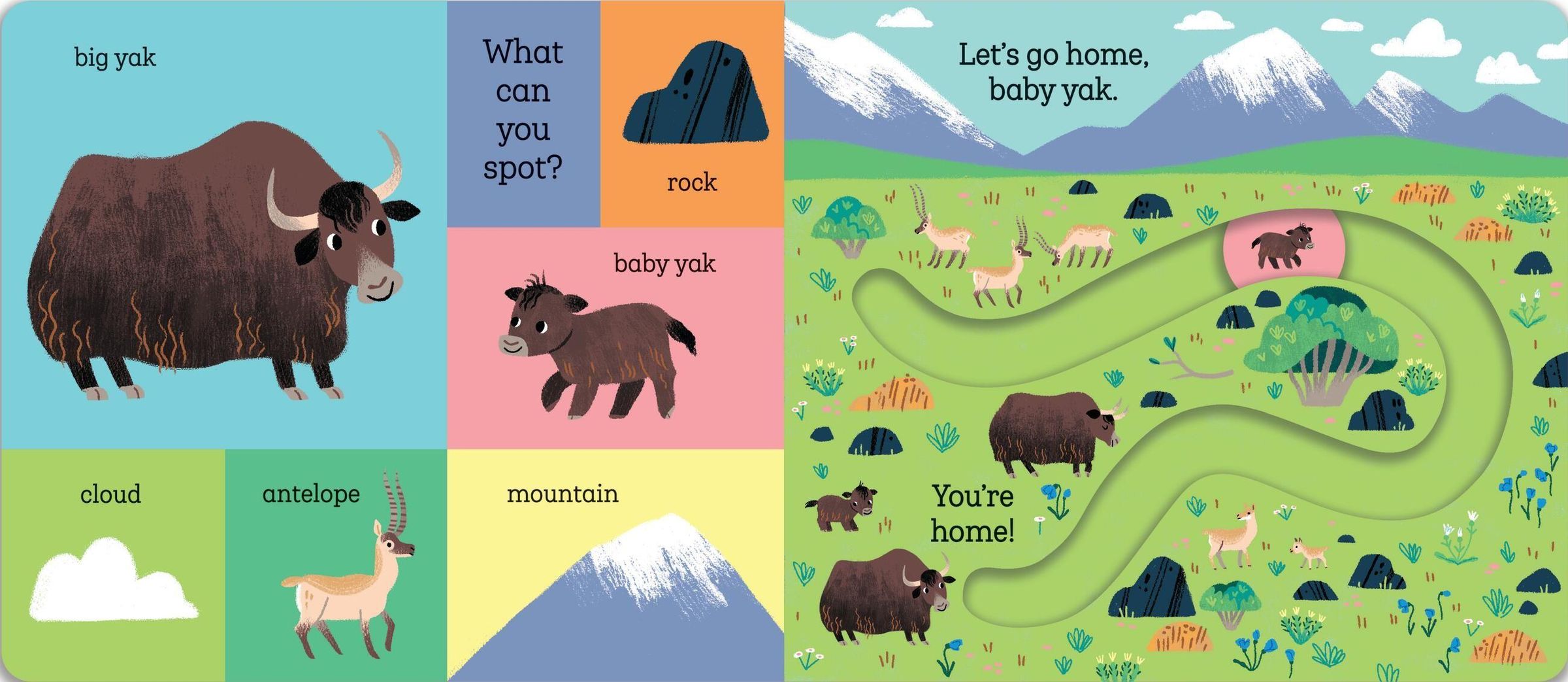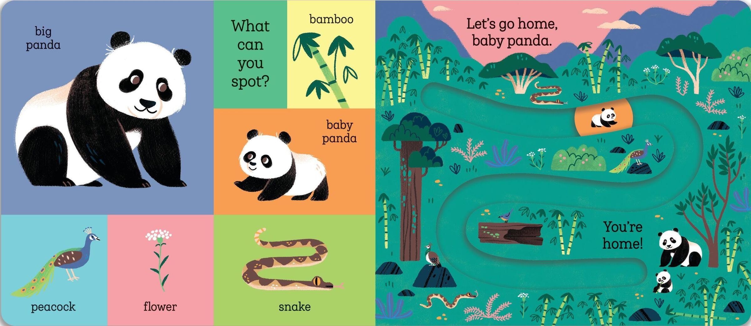 Meet baby panda, baby yak, baby tortoise, and baby leopard---four adorable wild animals who are lost! With easy-to-use moving parts and four unique tracks to develop hand-eye coordination and concentration, babies and toddlers will enjoy taking these adorable baby animals home in this robust, satisfying board book.