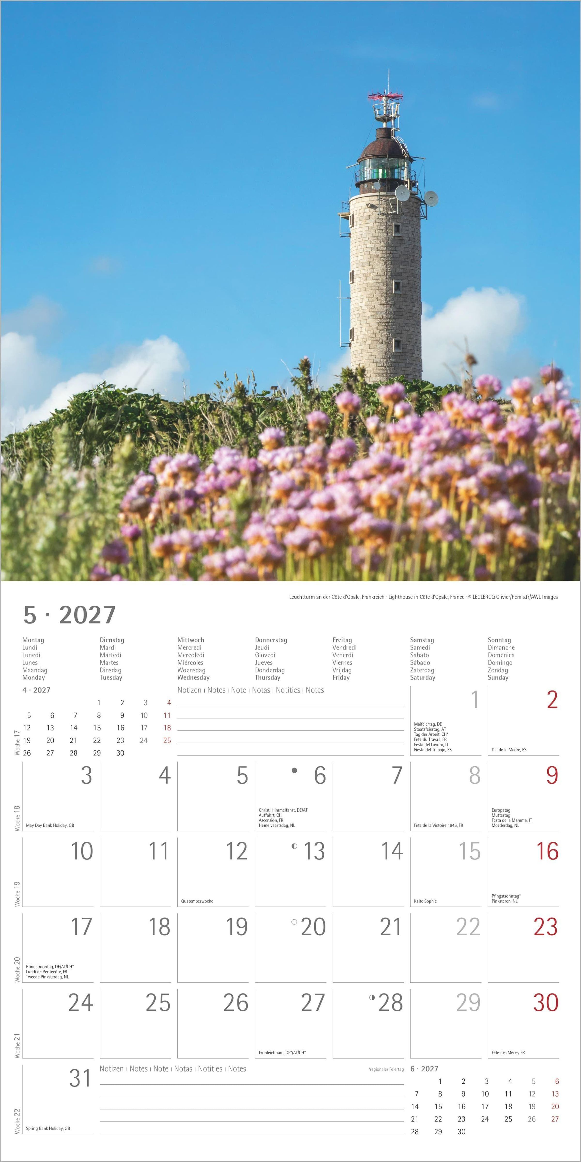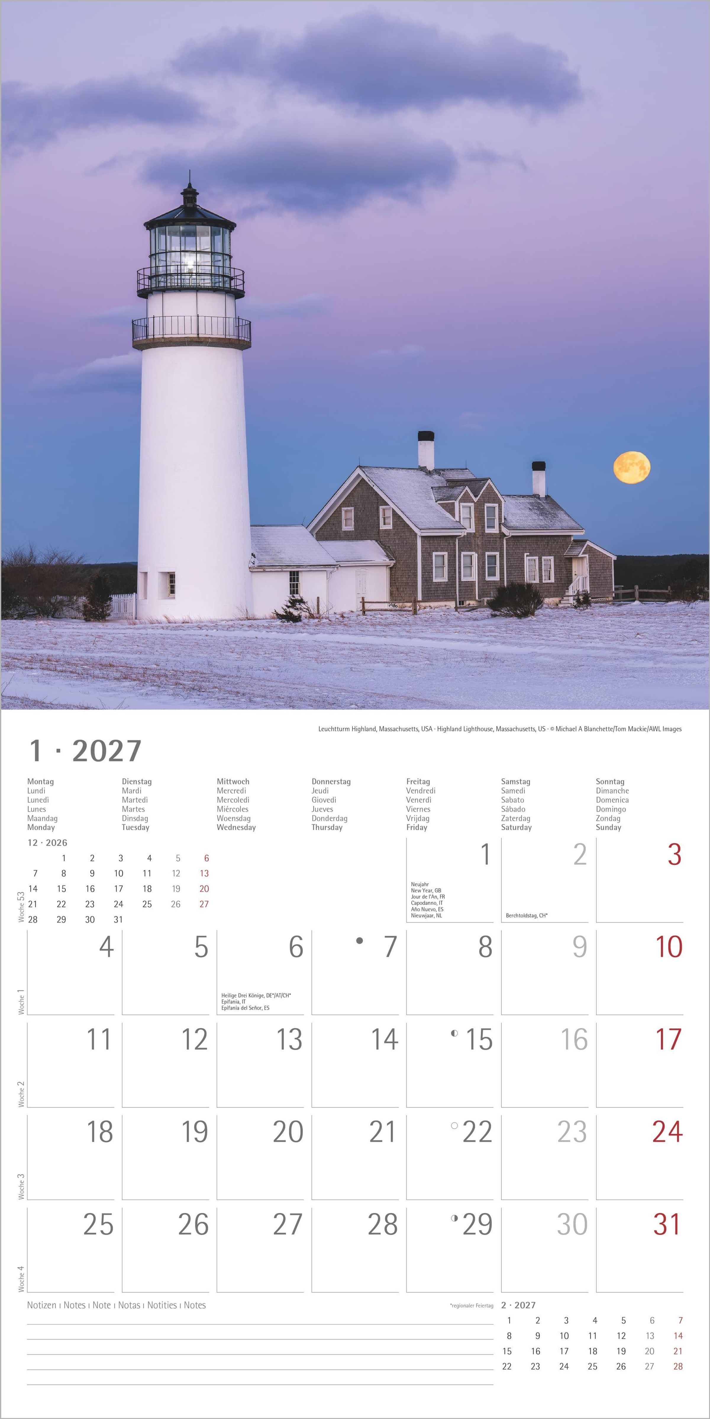 Der Alpha Edition Leuchttürme 2027 ist der perfekte Wandkalender für alle Leuchtturm- und Küstenliebhaber, die maritime Architektur und beeindruckende Küstenlandschaften schätzen. Mit 12 großformatigen Aufnahmen (30x30 cm, aufgeklappt 30x60 cm) präsentiert dieser hochwertige Wandkalender majestätische Leuchttürme aus unterschiedlichen Perspektiven -- von windumtosten Klippen bis zu malerischen Sonnenuntergängen.