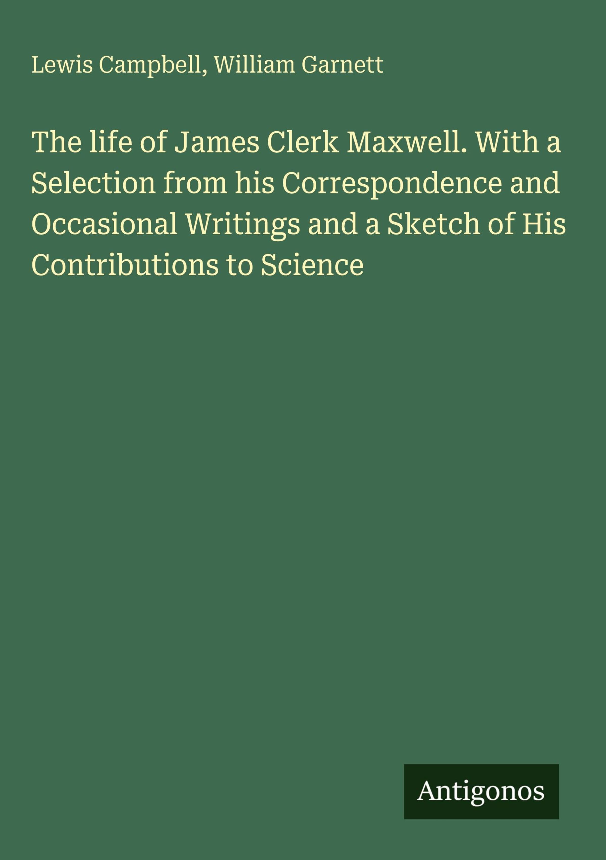 The life of James Clerk Maxwell. With a Selection from his Correspondence and Occasional Writings and a Sketch of His Contributions to Science