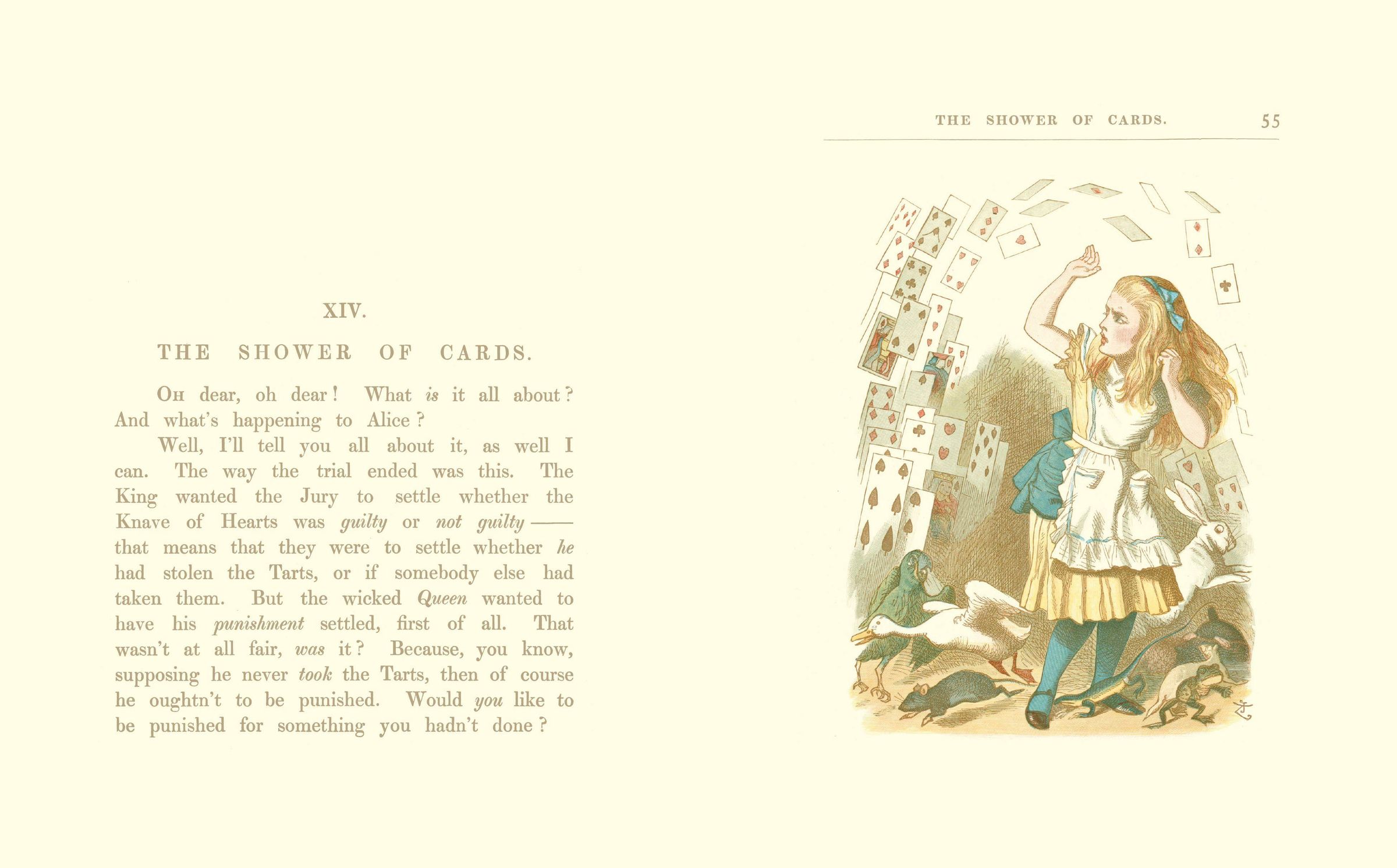 With this new, younger readership in mind, Carroll rewrote Alice himself, simplifying and abridging the original text, while Sir John Tenniel redrew, enlarged and coloured twenty of his iconic illustrations (with Alice in a yellow dress to reflect the 1890s craze for yellow!). The resulting book is a delightfully engaging experience; readers prompted to interact not only with the story but also with the images and even the physical book itself, in a way that is thoroughly modern.