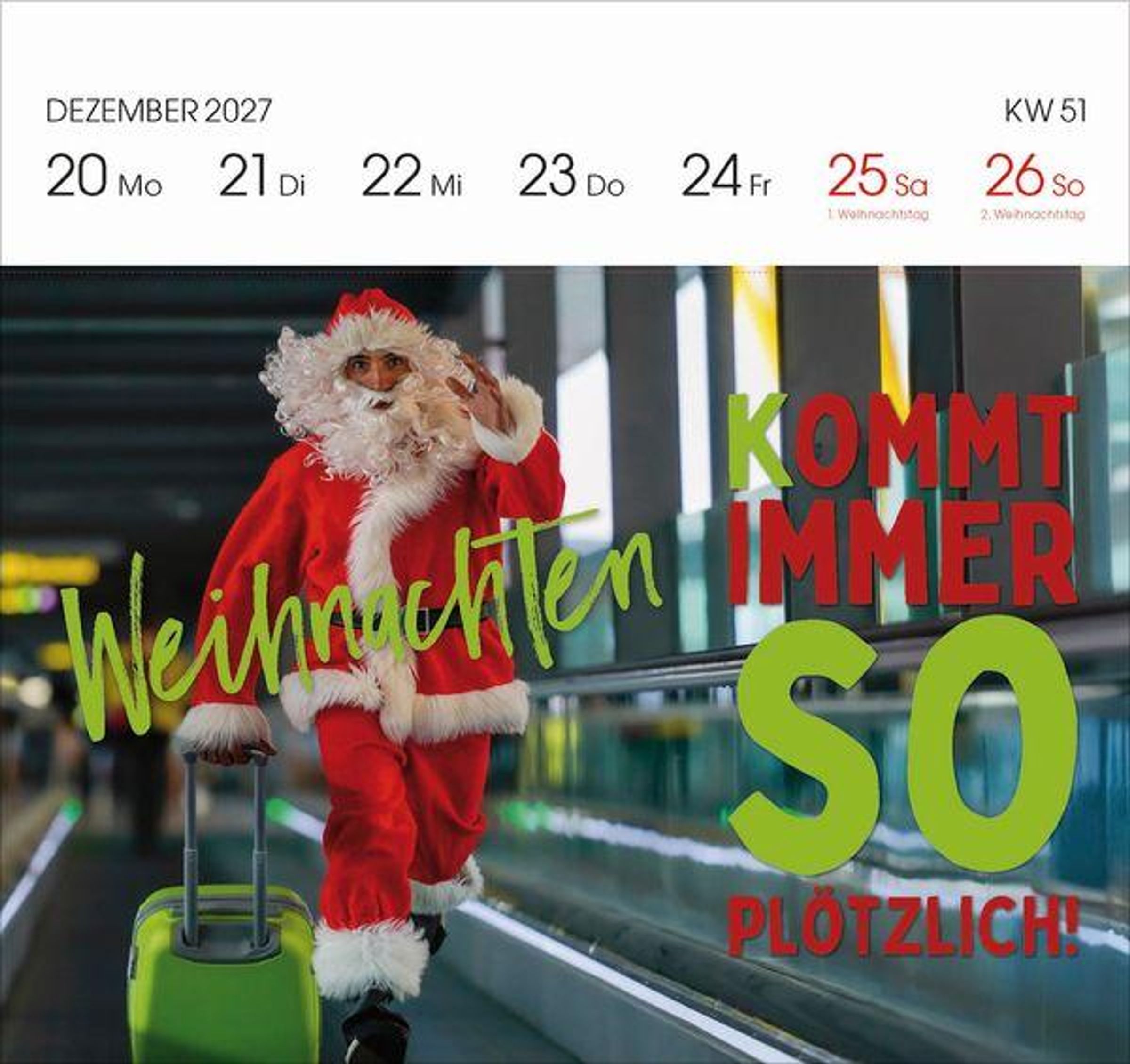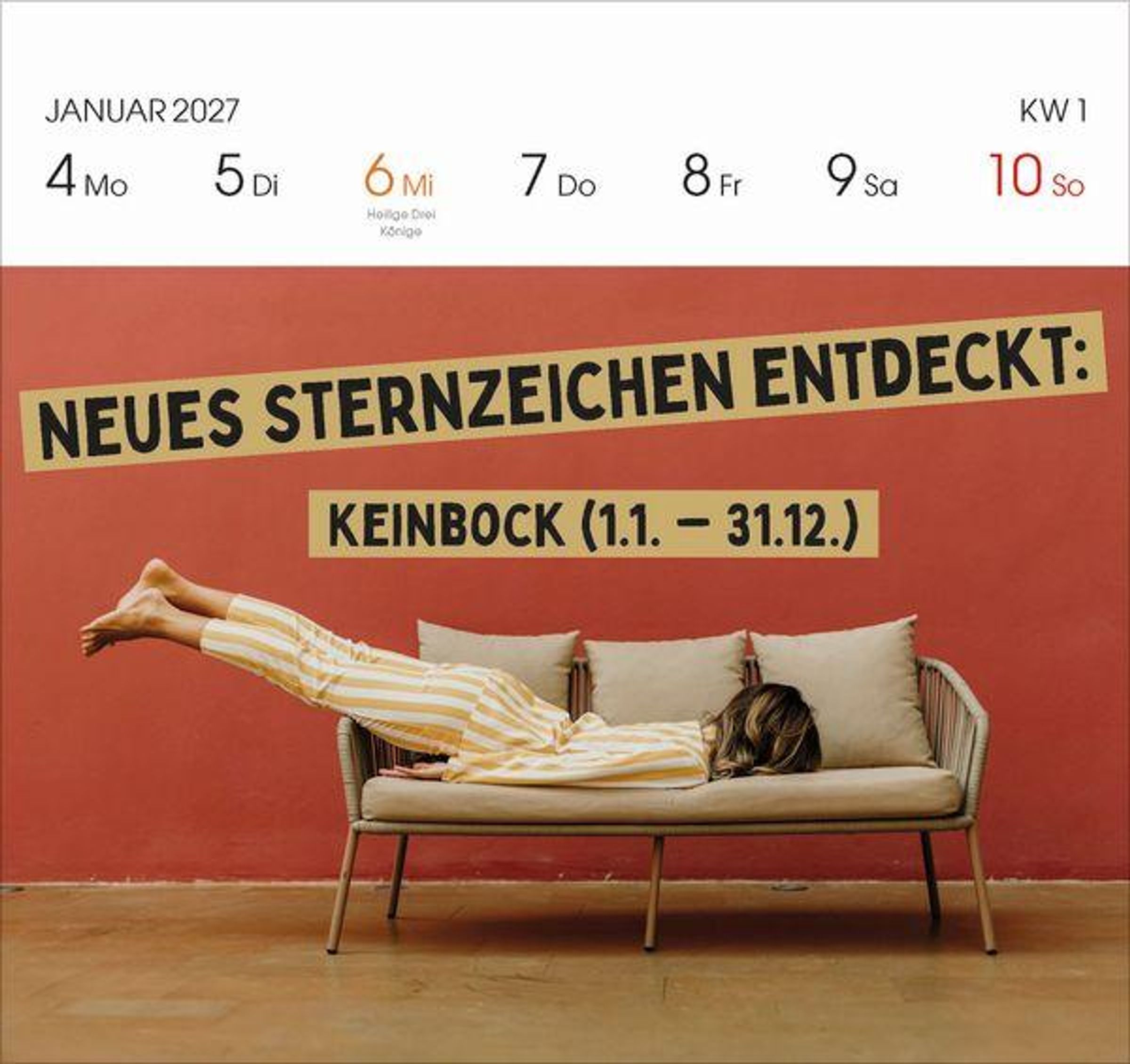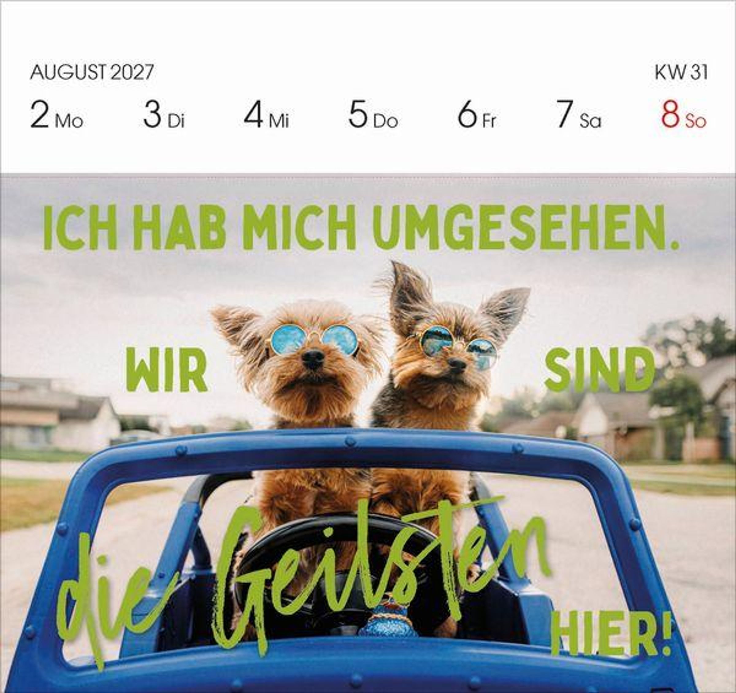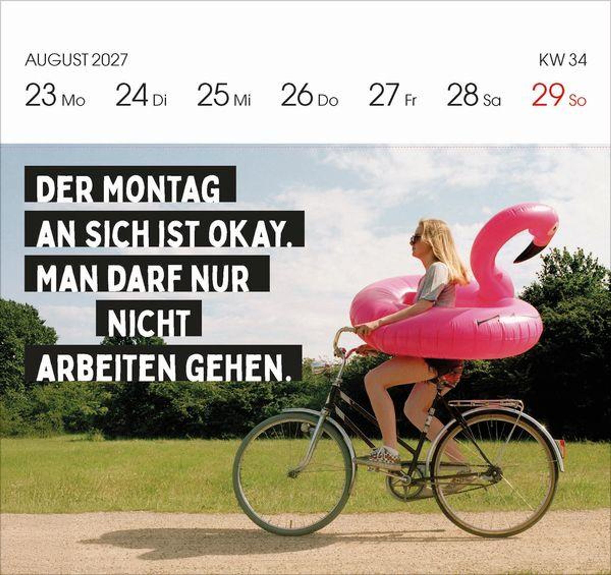 - Aufstellbarer Foto-Postkartenkalender. Jede Woche eine neue lustige Foto-Spruch-Kombination. Hochwertiger Wochenkalender für den Schreibtisch