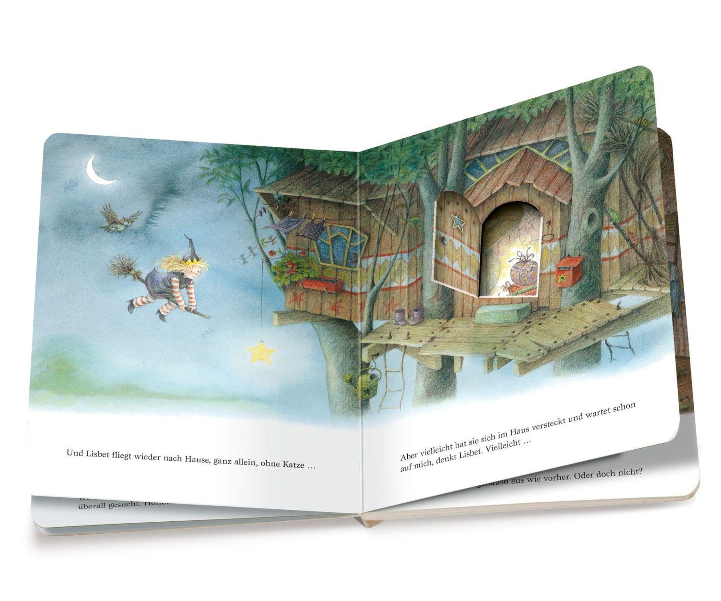 Lisbet, die kleine Hexe, sucht ihre Katze! Gemeinsam mit den Kindern schaut sie hinter alle Türchen und Klappen, aber die Katze ist nirgends zu finden. Dabei hat Lisbet heute doch Geburtstag und ohne ihre Katze will sie nicht feiern. Doch am Abend, als Lisbet erschöpft nach Hause kommt, wartet eine große Überraschung auf sie ... Der Bilderbuchbestseller als Pappbilderbuch - mit vielen Klappen und Türchen.