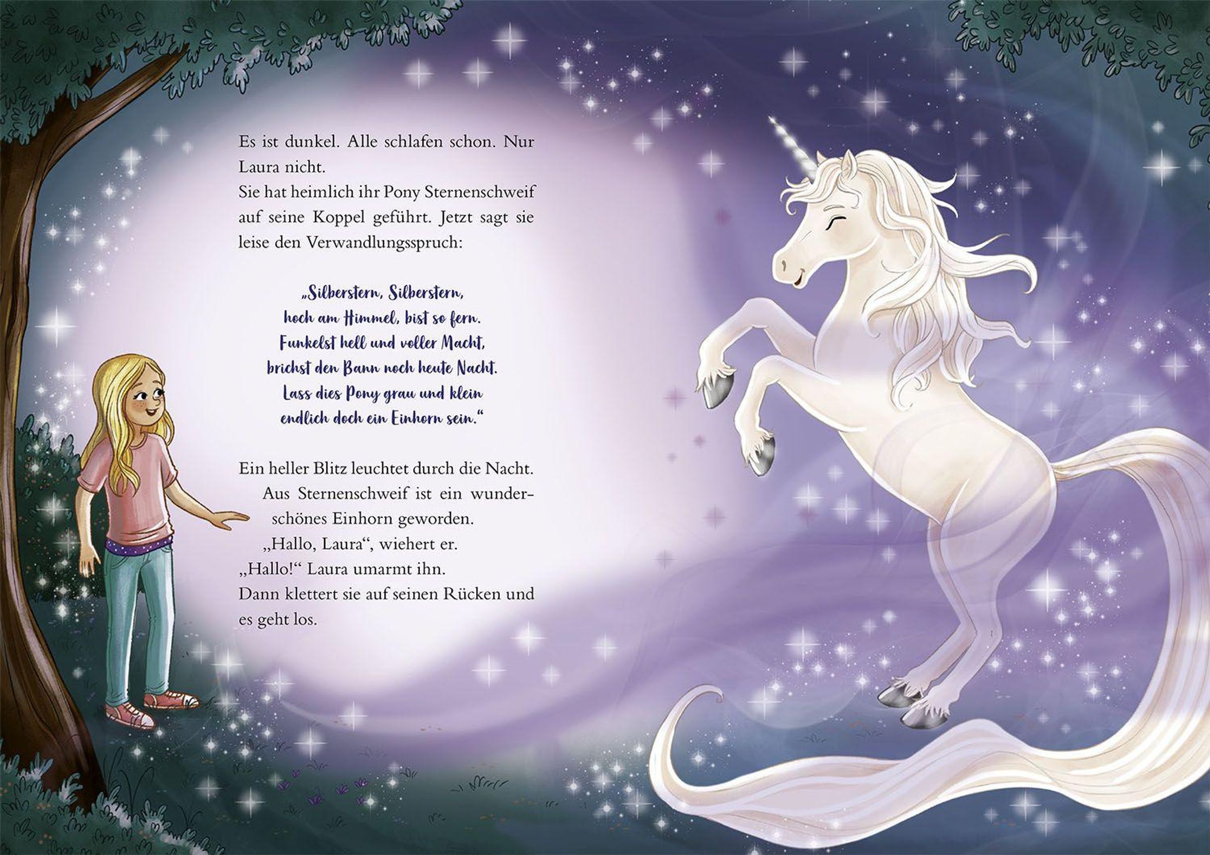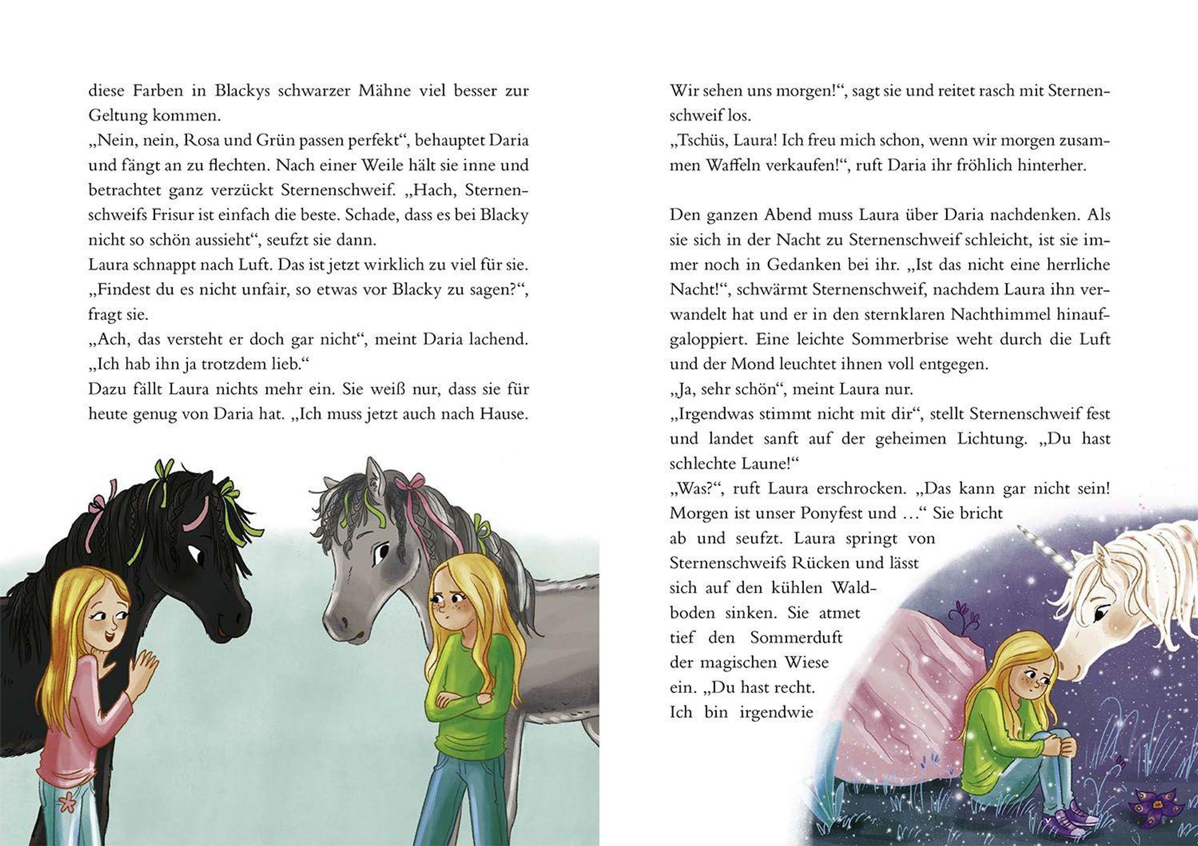 Laura und ihr Pony Sternenschweif erleben zusammen viele magische Abenteuer - doch hinter Sternenschweifs funkelnden Hufen verbirgt sich ein noch größeres Geheimnis: Er ist ein Einhorn! In diesem bezaubernden Vorlesebuch begleiten die jungen Leser die beiden Freunde auf einer Reise voller Mut und Entdeckungen. Sie erfahren, wie Laura und Sternenschweif gemeinsam ihre Ängste überwinden - und das nicht nur mit Magie. Die liebevoll erzählte und wunderschön illustrierte Geschichte zeigt, wie wichtig es ist, sich seinen eigenen Herausforderungen zu stellen und dabei Vertrauen in die eigenen Fähigkeiten zu gewinnen. Kleine Leserinnen und Leser lernen, dass sie nicht alleine sind und dass Mut auch ohne Zauberkräfte entstehen kann.