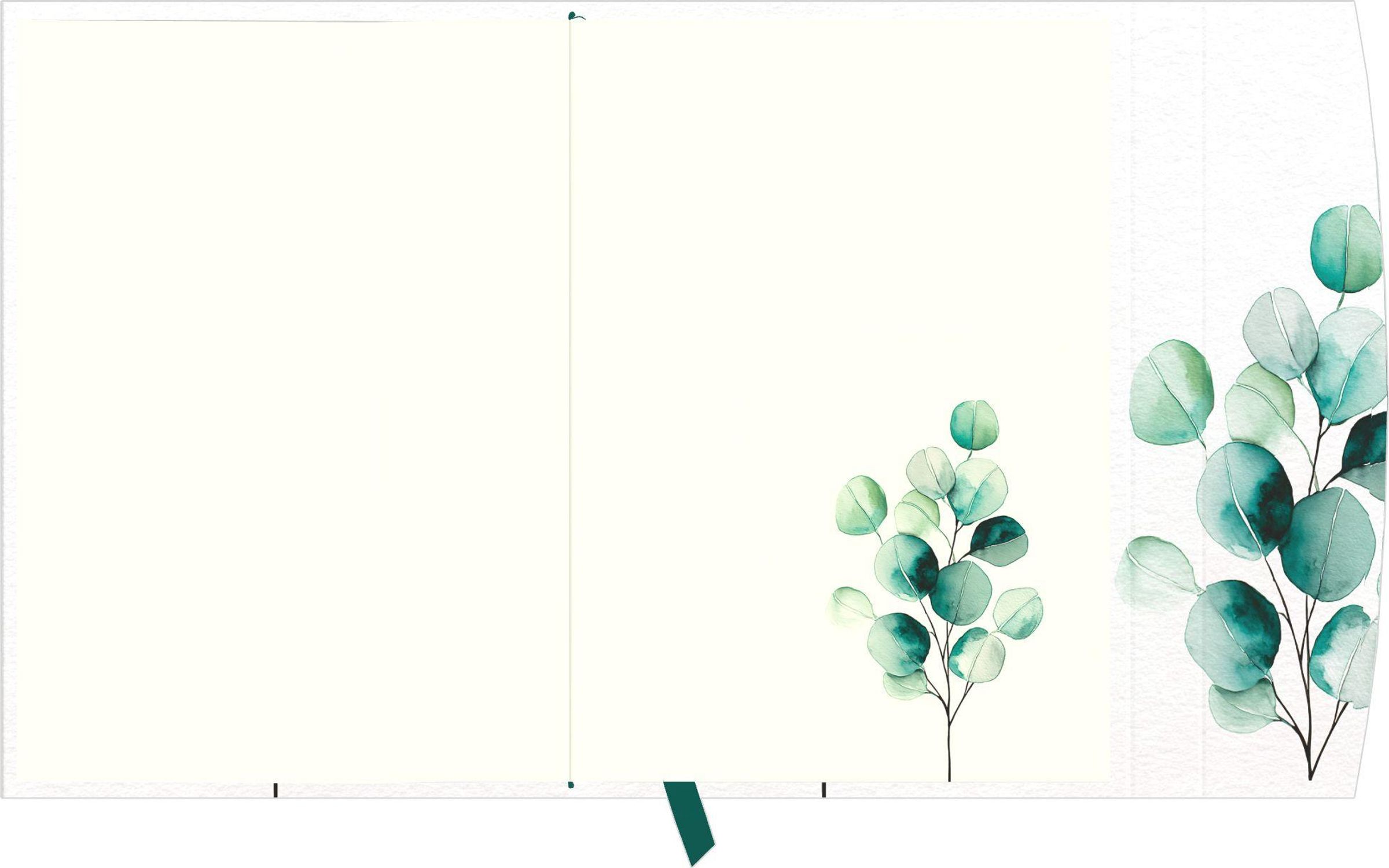 Hochwertige Ausstattung: Lesebändchen, farbige Vorsatzpapiere, Tasche für Visitenkarten