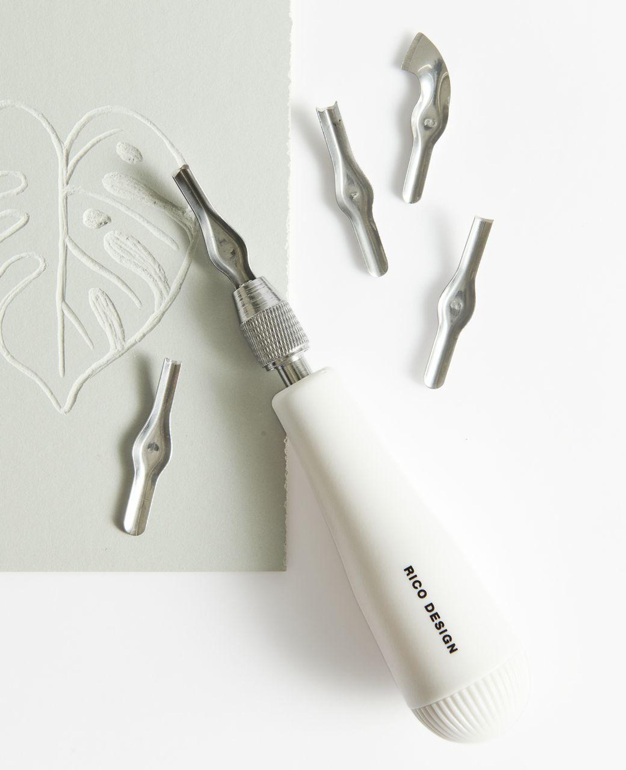 - Inhalt: 1 Handgriff und 5 Klingen (Geißfüß, U-Form, Hohleisen 3 mm, Hohleisen 4 mm und 1 Konturenmesser