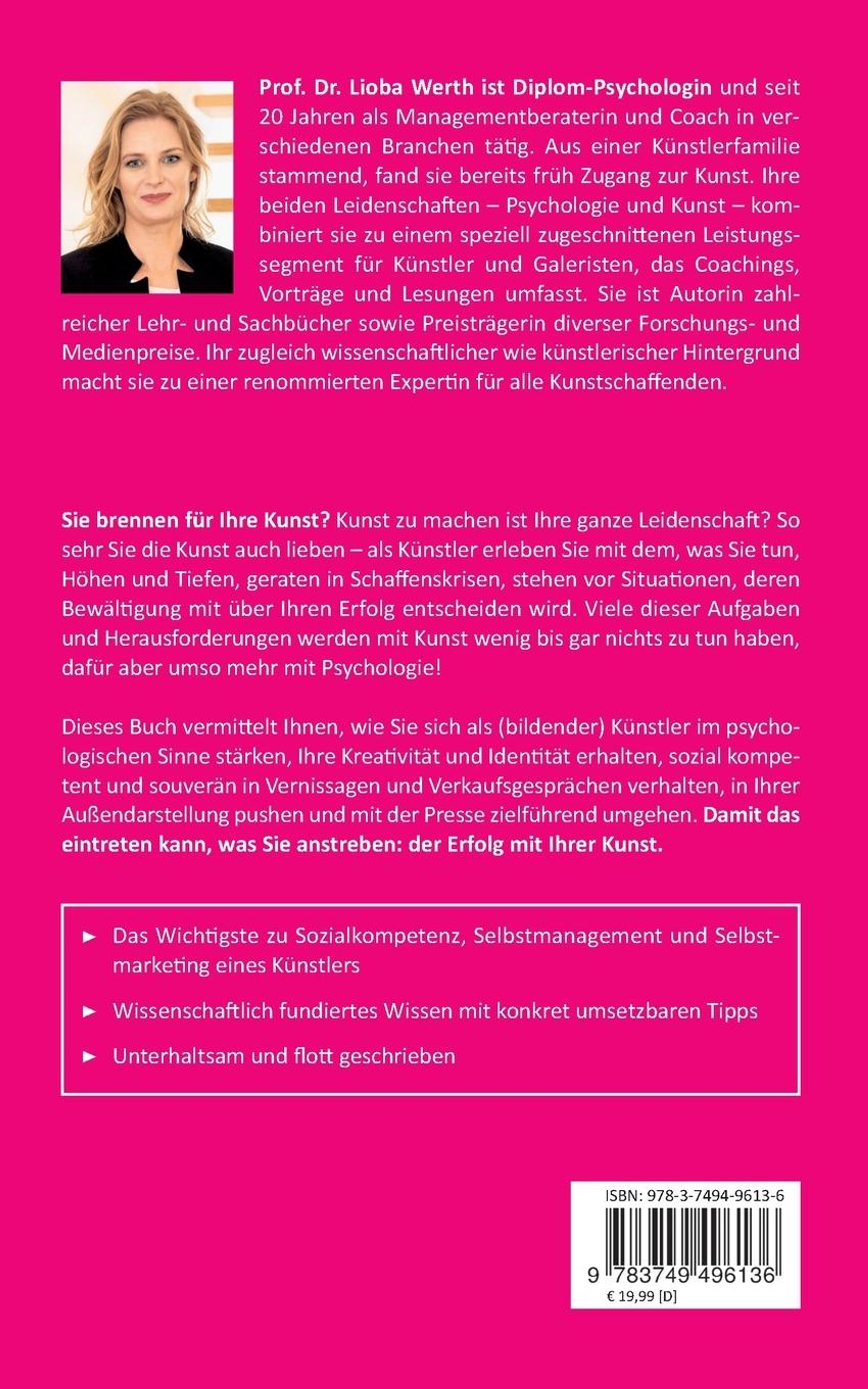 Sie brennen für Ihre Kunst? Kunst zu machen ist Ihre ganze Leidenschaft? So sehr Sie die Kunst auch lieben, als Künstler erleben Sie mit dem, was Sie tun, Höhen und Tiefen, geraten in Schaffenskrisen, stehen vor Situationen, deren Bewältigung mit über Ihren Erfolg entscheiden wird. Viele dieser Aufgaben und Herausforderungen werden mit Kunst wenig bis gar nichts zu tun haben, dafür aber umso mehr mit Psychologie!