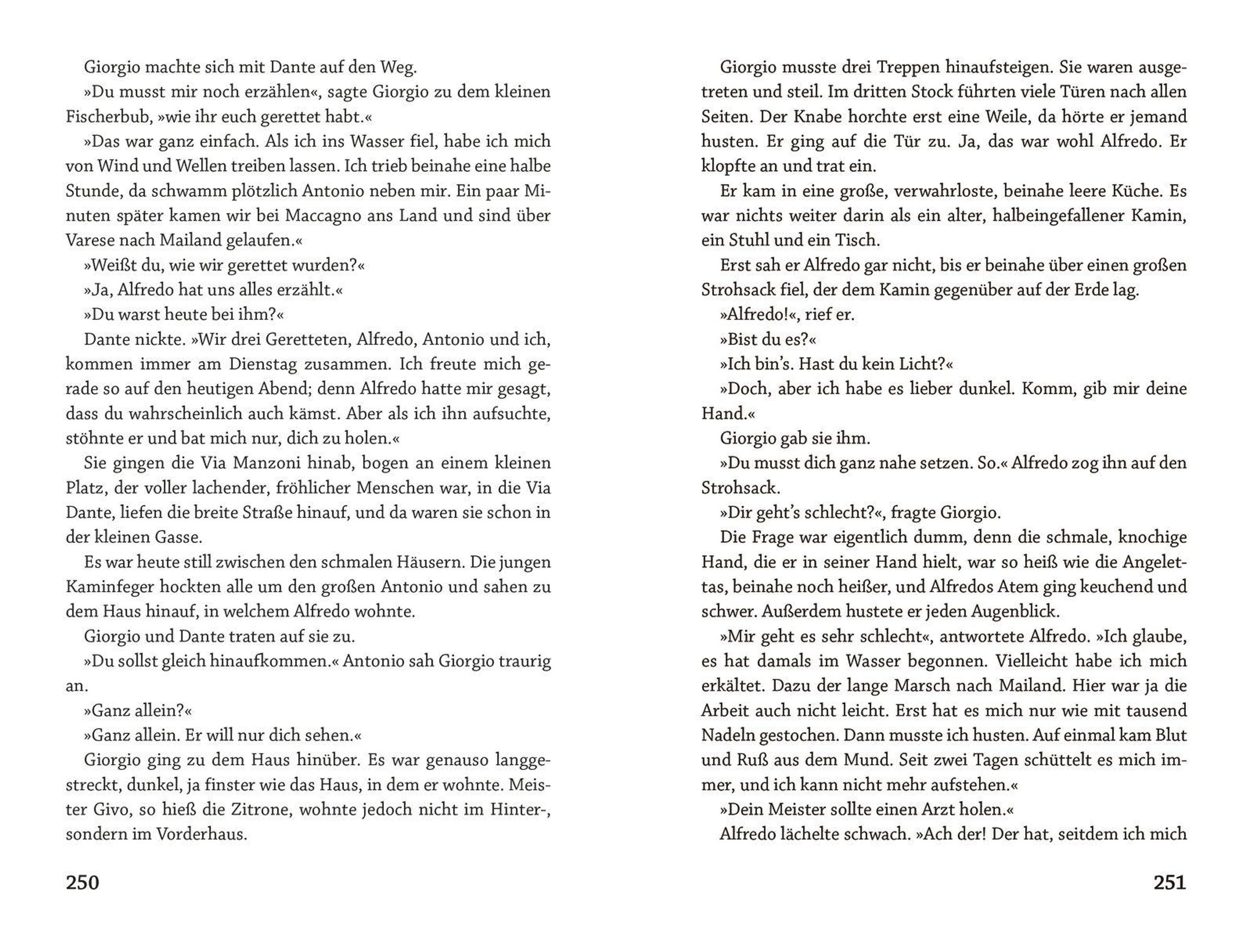 Tessin, Mitte des 19. Jahrhunderts: Der kleine Giorgio ist der Sohn einer armen Tessiner Bergbauernfamilie. Aus Not wird er als Kaminfeger nach Mailand verkauft. Dort muss er durch die finsteren Kamine klettern und mit den nackten Händen den Ruß herabwerfen. Doch die Kinder wehren sich gegen ihre Unterdrücker und schließen sich im Geheimbund der <<Schwarzen Brüder>> zusammen. Aber nicht nur in den Kaminen, auch auf den Straßen droht Gefahr - von einer gemeinen Bande Mailänder Straßenjungen...