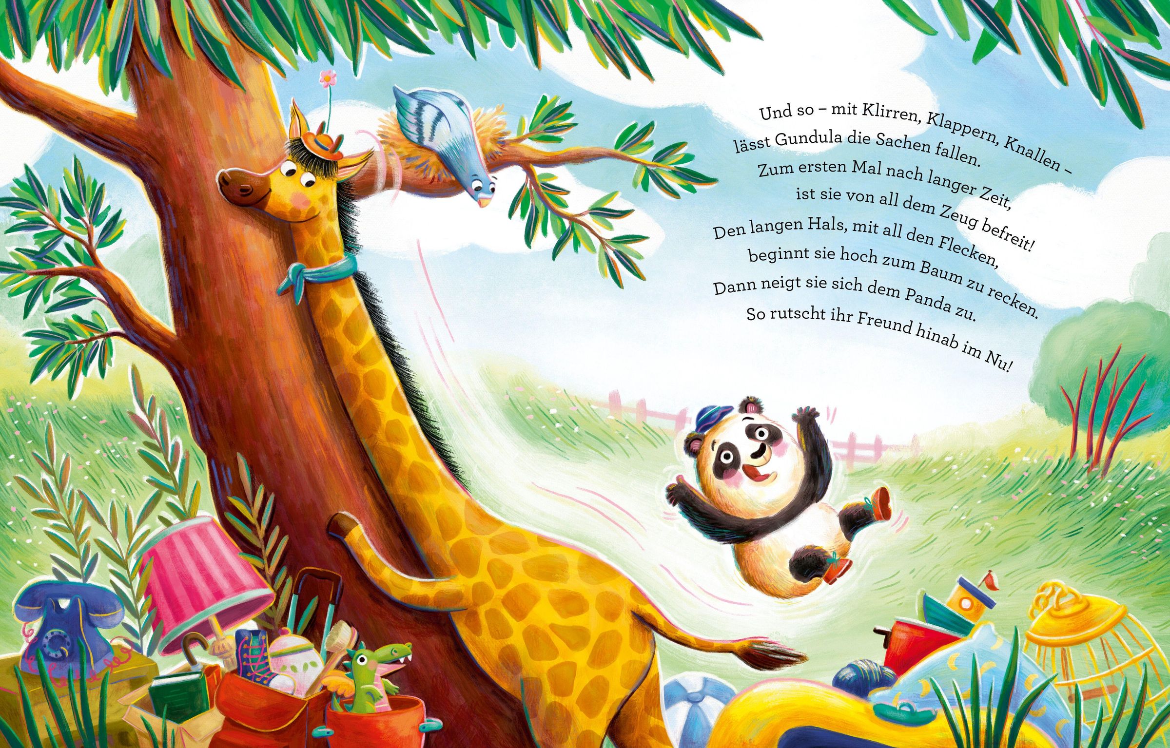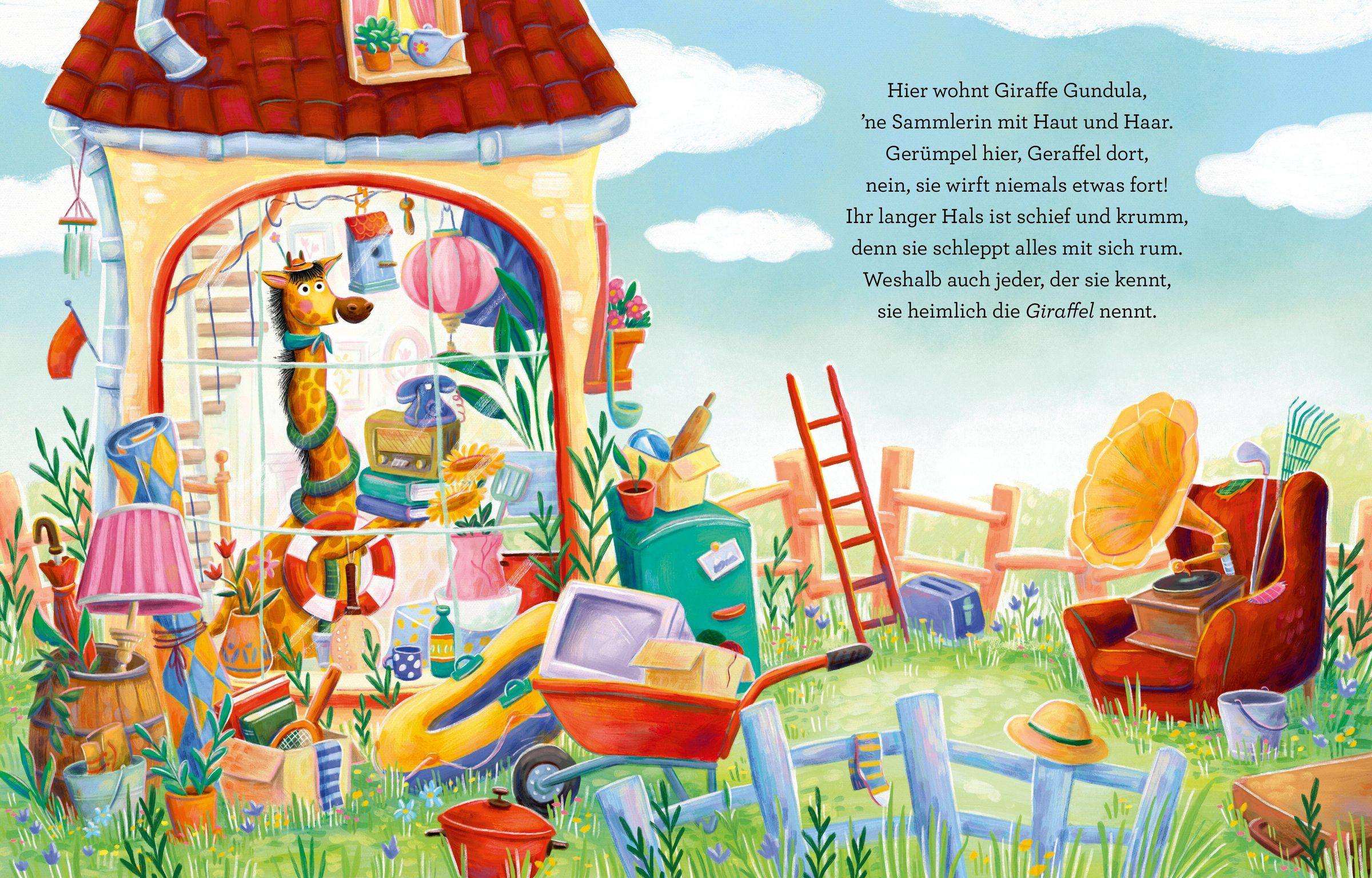 'Das große Giraffen-Geraffel' ist ein humorvoll gereimtes Bilderbuch für Kinder ab 3 Jahren über Sammelleidenschaft, Freundschaft und die Frage, was im Leben wirklich wichtig ist.