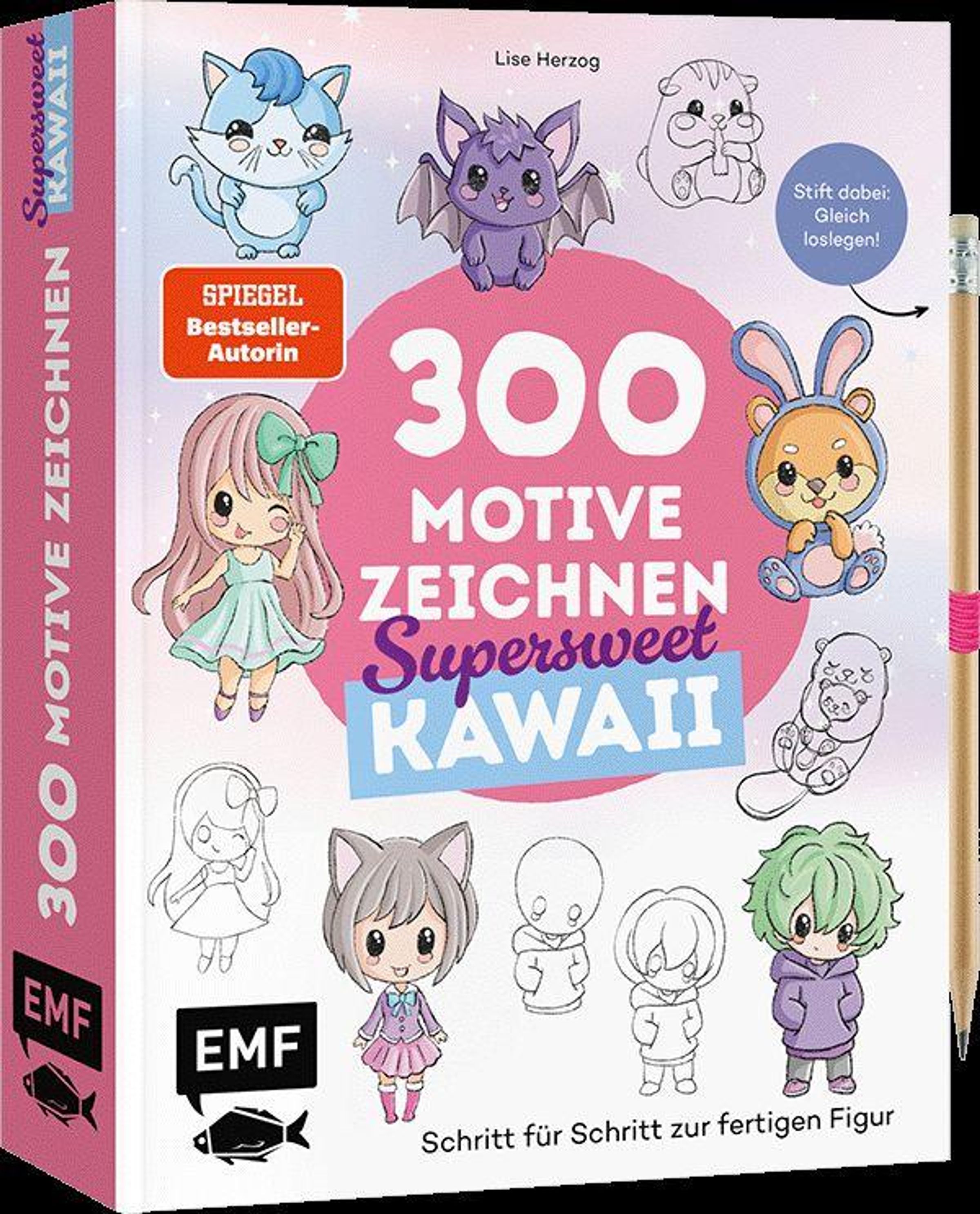 300 neue zuckersüße Motive von Bestsellerautorin und Illustratorin Lise Herzog: Mit diesem Zeichenbuch lernen alle spielend leicht das Kawaii-Zeichnen. Schritt für Schritt werden aus einfachen Formen kunterbunte Kawaii-Figuren, niedliche Chibis und supercute Tiere gezaubert. Das Buch im praktischen Mitnahmeformat enthält eine Stiftschlaufe und einen Bleistift, sodass auf den Mitmachseiten sofort losgelegt werden kann. Ob zuhause, unterwegs oder als Geschenk: Ideal für alle Zeichenanfänger*innen und Familien, die gemeinsam oder alleine die kreative Welt des Kawaii-Zeichnens entdecken möchten.