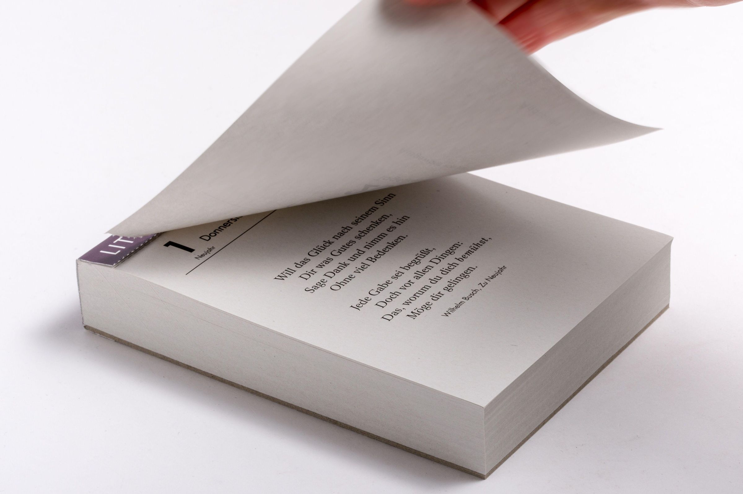 Dieser Abreißkalender öffnet jeden Morgen ein Fenster zur Literatur: Mit Goethe und der Günderrode, mit Joachim Ringelnatz und Else Lasker-Schüler geht es im Kopf auf eine kleine Reise in ferne Zeiten und an besondere Orte, vorbei an zahlreichen witzigen Szenen und klugen Gedanken. Mit Gedichten, Prosa, Bonmots und Briefen von der Antike bis zur Moderne, von Dichtenden und Denkenden, Berühmten und Vergessenen.