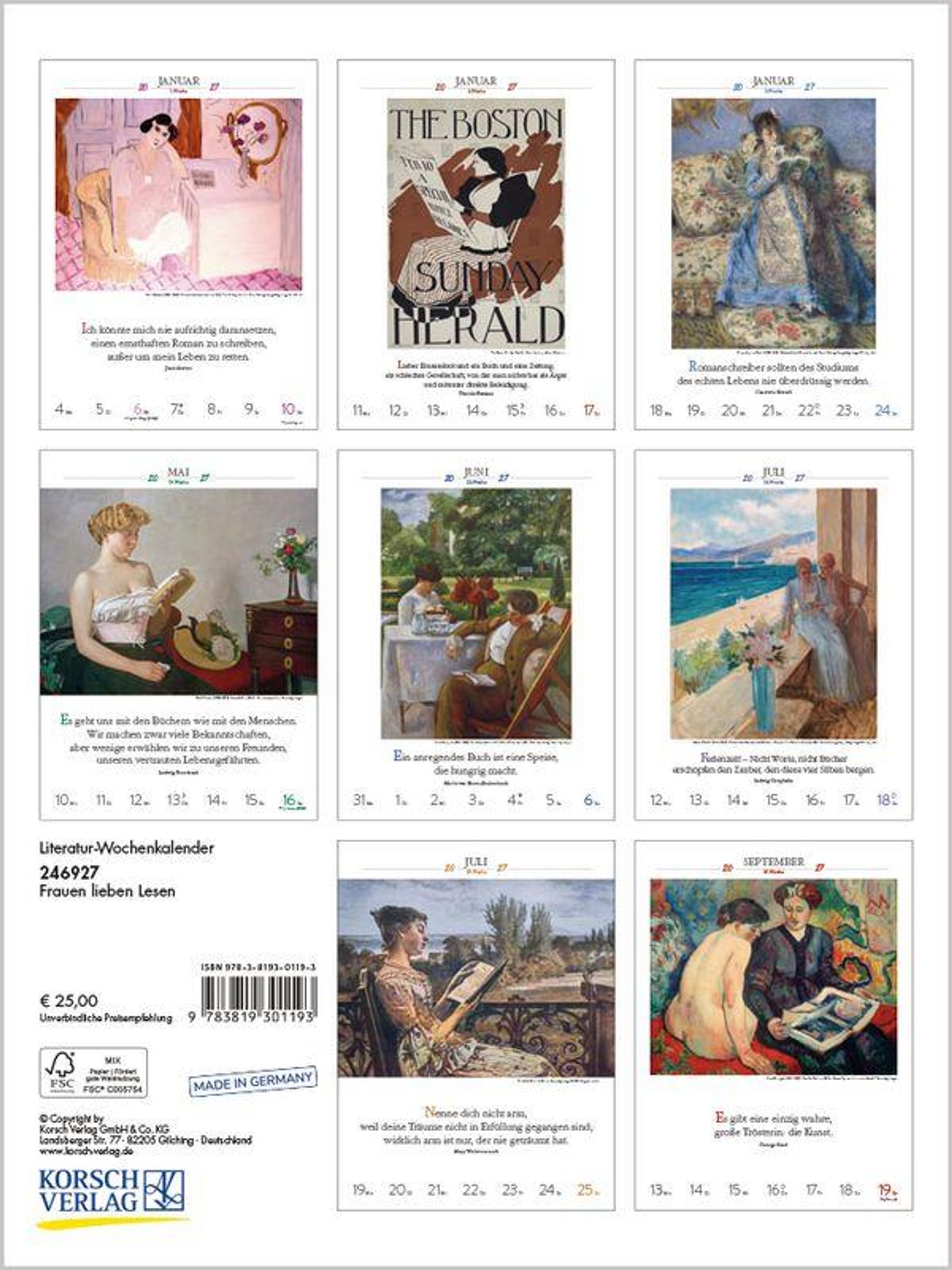Format: 24 x 32 cm; Literatur-Wochenkalender mit 53 einzigartigen Bildern und Zitaten