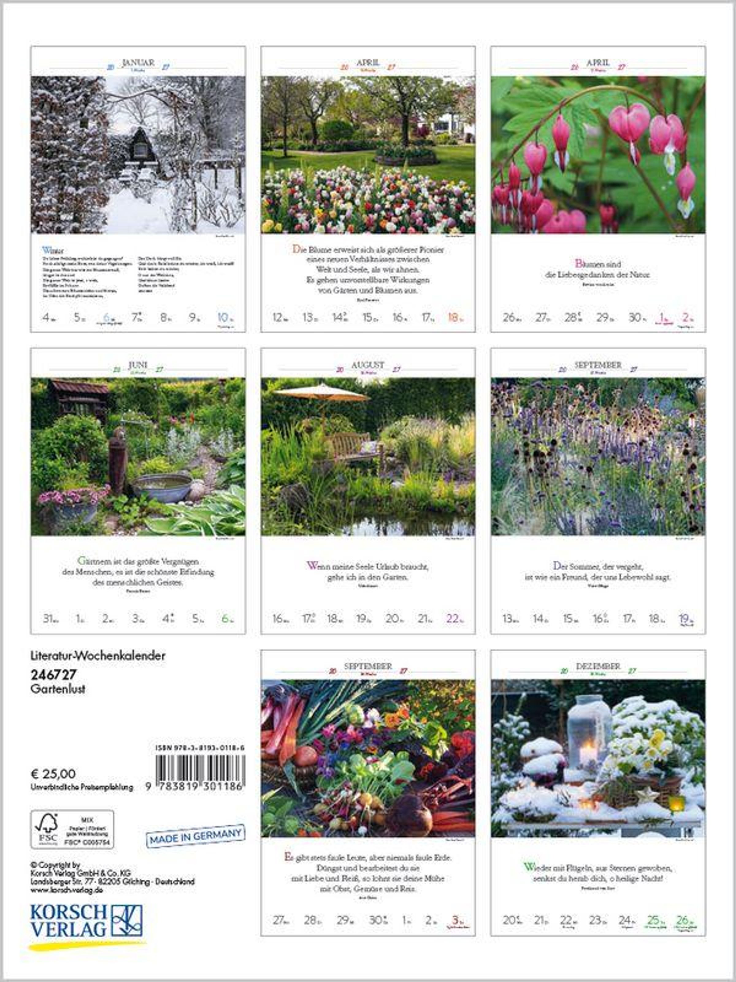 Traumhafte Gartenaufnahmen, kombiniert mit inspirirenden und klugen Gedanken, versprechen Gartenlust Woche für Woche. Klimaneutral hergestellt auf nachhaltig produziertem Papier.