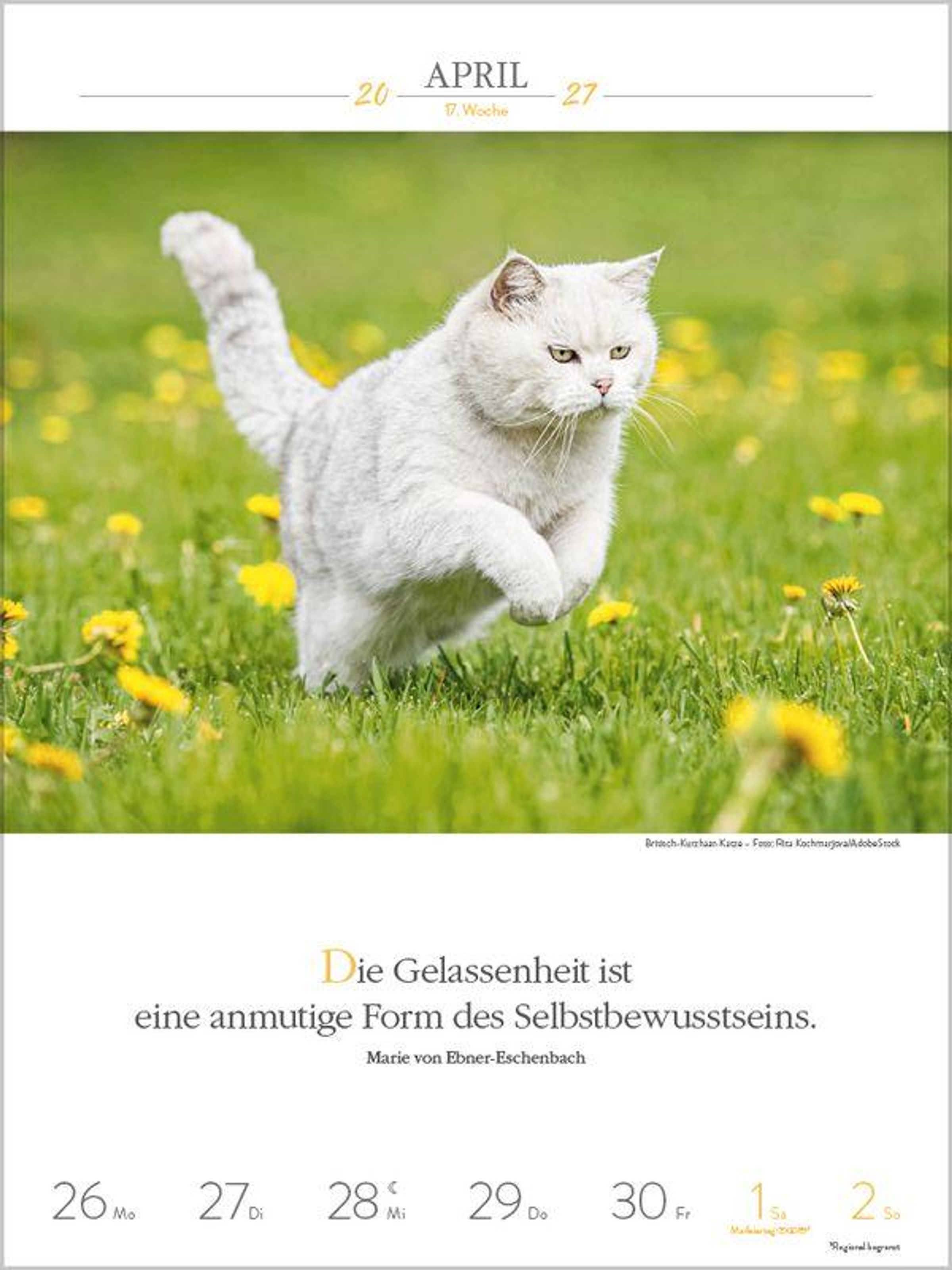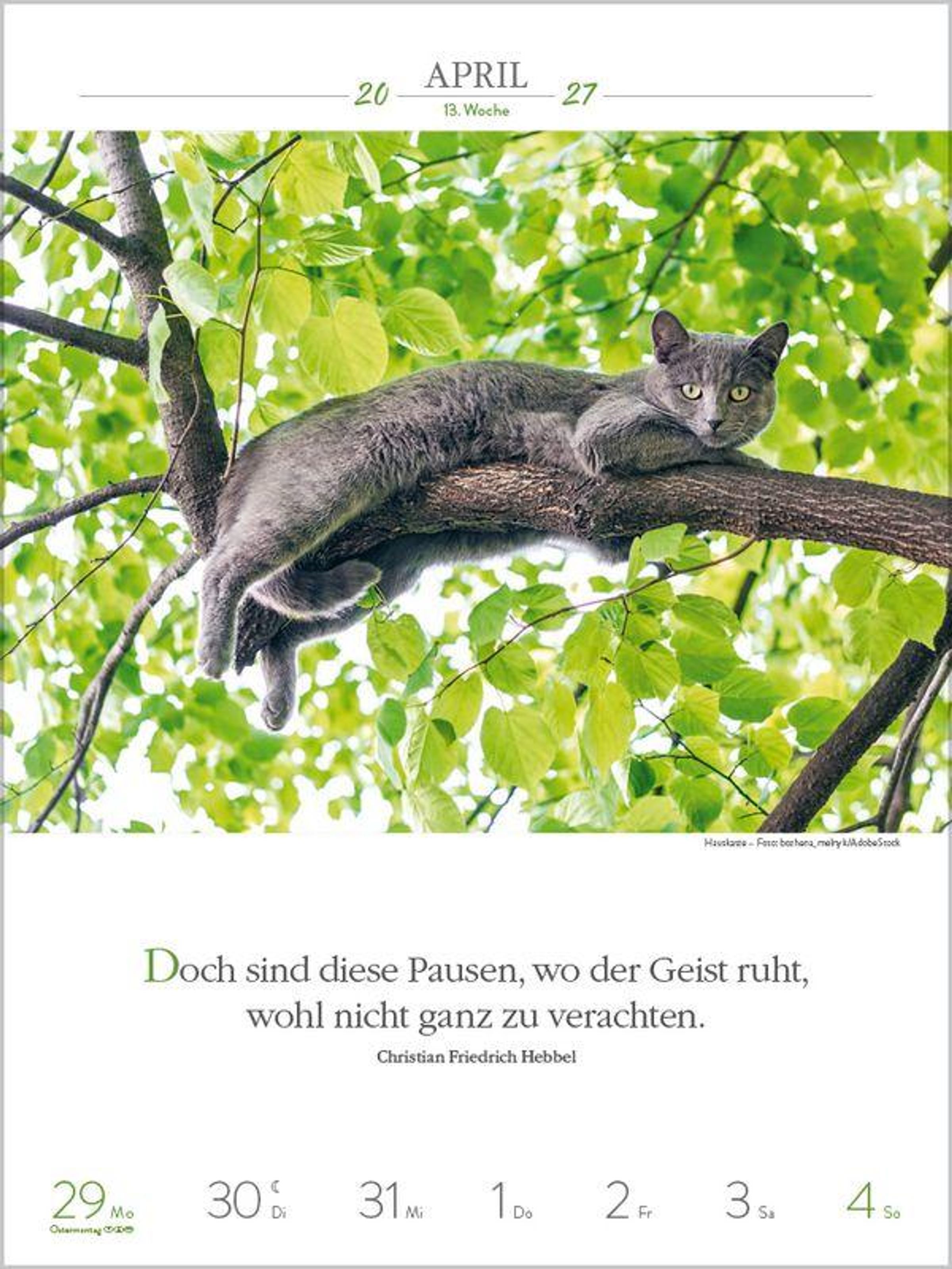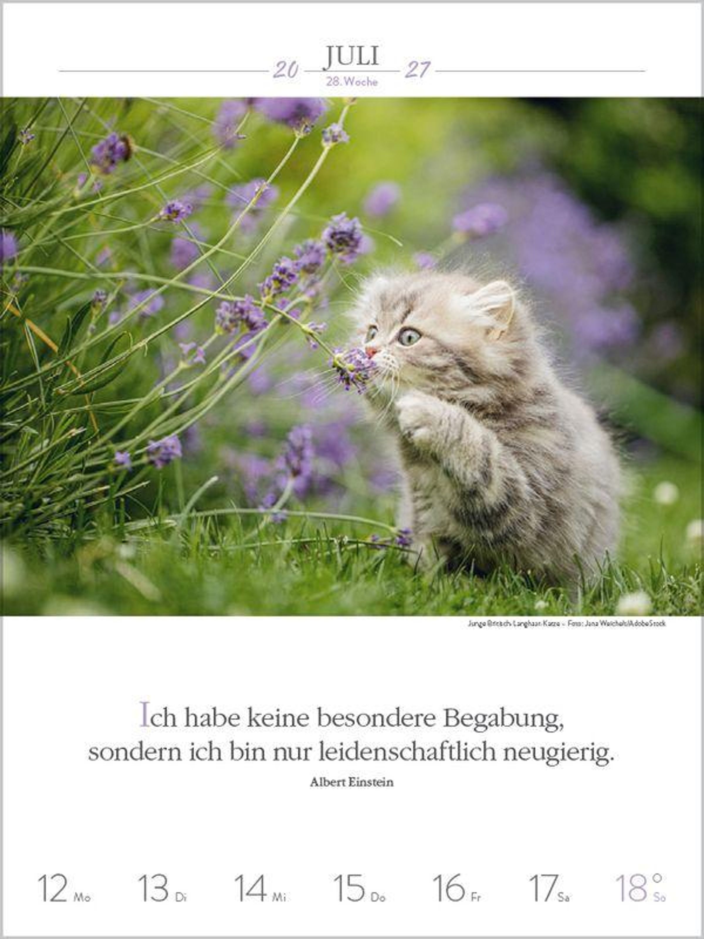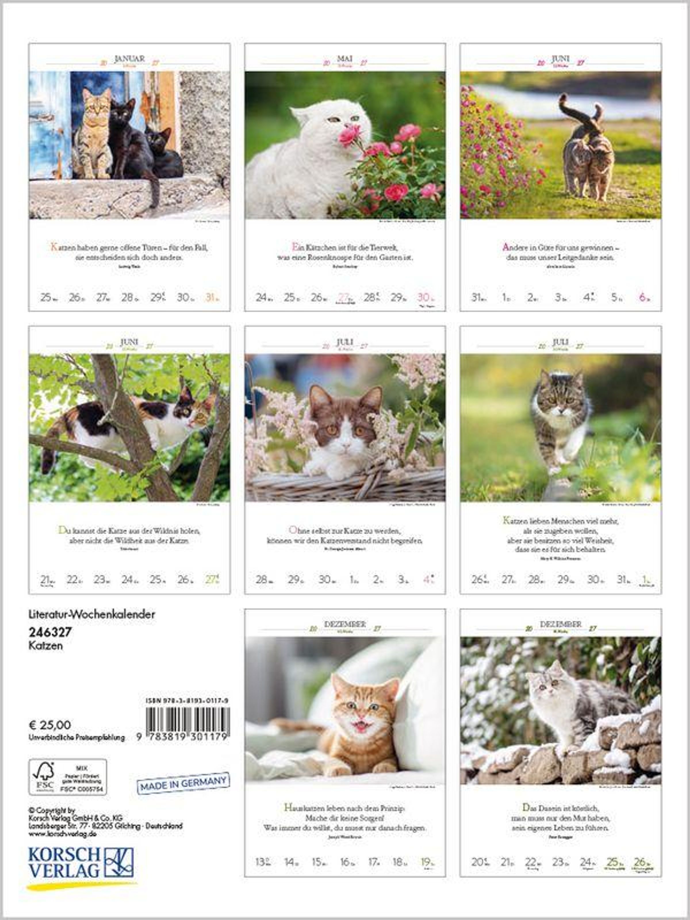 Außergewöhnliche Fotos von Katzenpersönlichkeiten, kombiniert mit den Gedanken berühmter Schriftsteller, sind Woche für Woche ein Vergnügen für alle, die Katzen lieben. Klimaneutral hergestellt auf nachhaltig produziertem Papier.