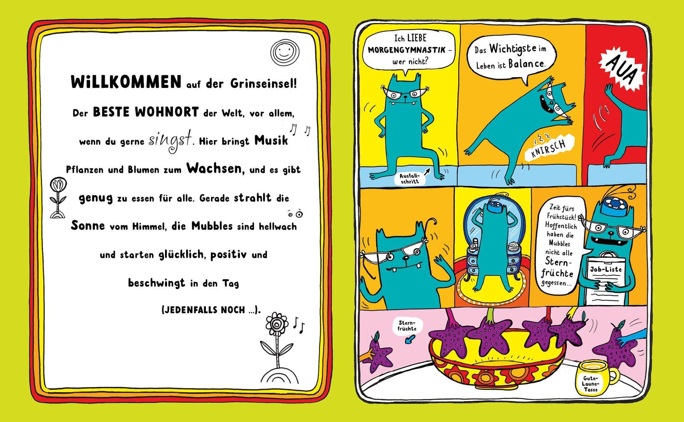 Begleite die Mubbles und Wibbles auf ihr erstes Abenteuer und finde heraus, was hinter dem magischen Vorhang ist und die Grinseinsel auf den Kopf stellt. Dieser Kinder-Comic ist der perfekte Lesespaß zum gemeinsamen Vorlesen oder Selberlesen mit seinen farbenfrohen Illustrationen , dem lustigen Humor und jeder Menge Impulse zum Mitsingen und Tanzen!