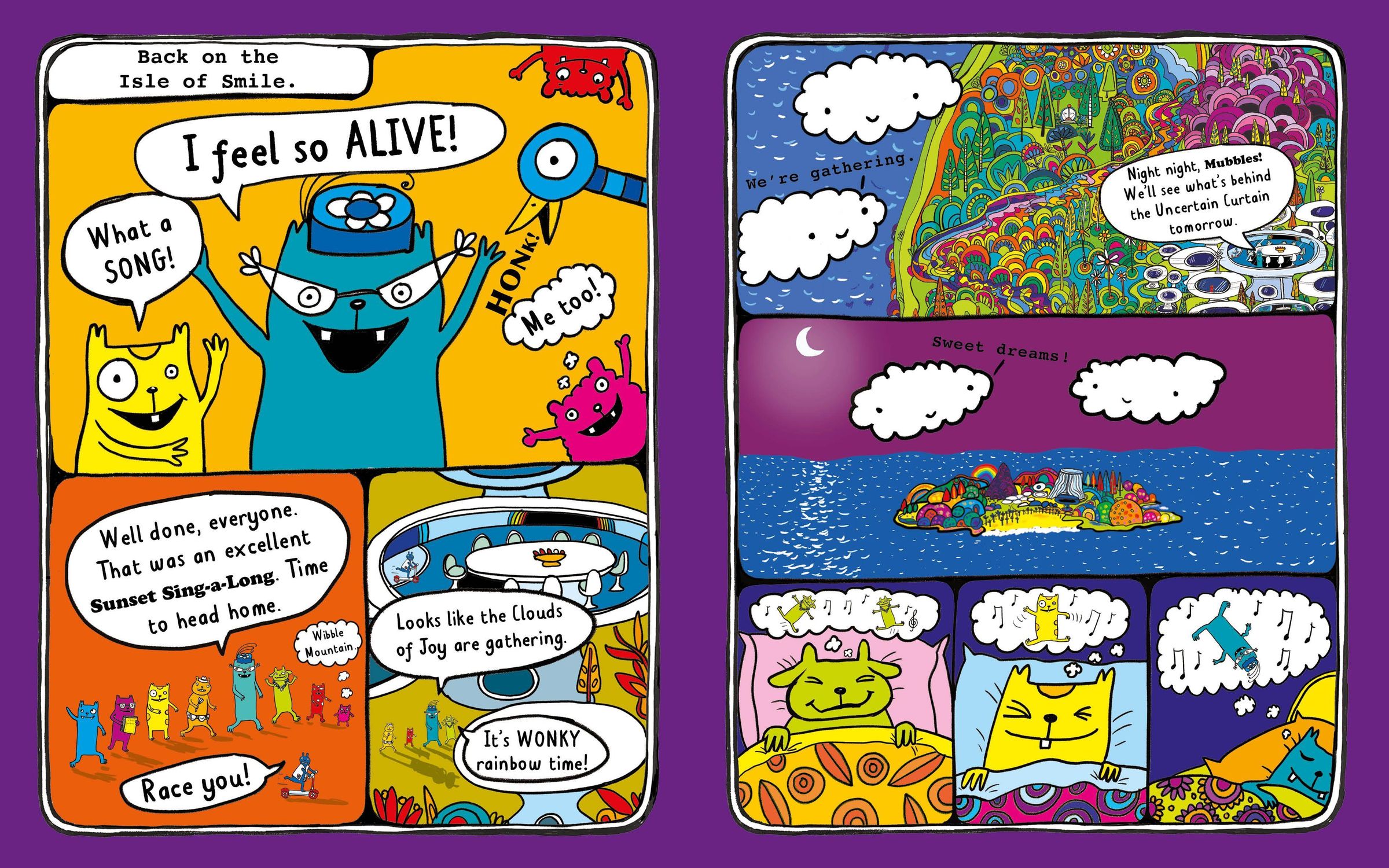 Welcome to the Isle of Smile! Come on in and meet the colourful, fun-loving Mubbles - Bash, Dash, Cheery and the gang. The Mubbles love their island, especially the mysterious Uncertain Curtain, which always delivers an unexpected surprise! What will it be today?