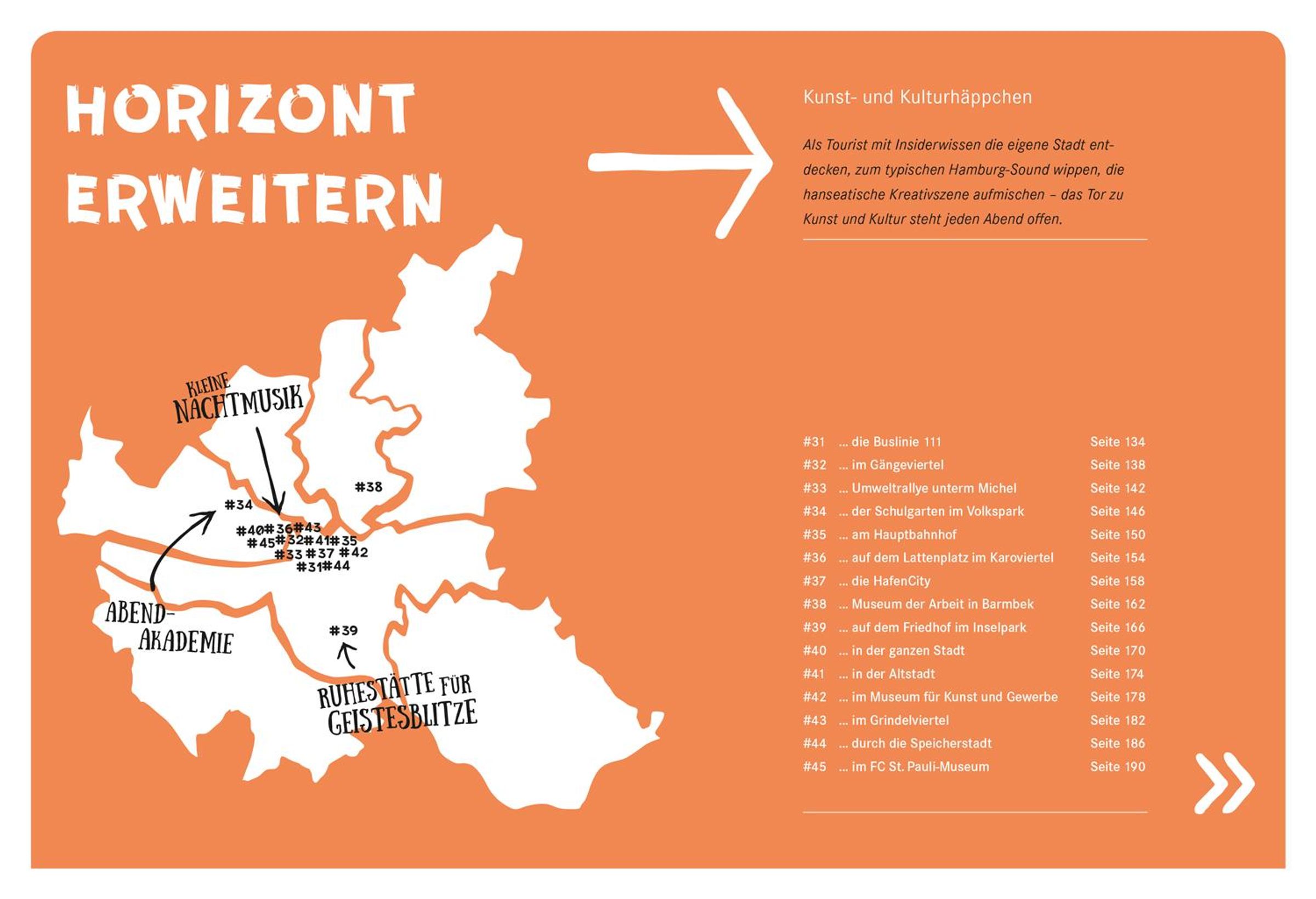 Eskapaden für die schönsten Zeit des Tages: Feierabend! Vier abwechslungsreiche Kapitel decken allen Feierabend-Bedürfnisse ab und zeigen, wie einfach es ist, mehr als das Bekannte zu erleben. Ob Dampf ablassen, Plaudern & Genießen, den Horizont erweitern oder mal kurz abhauen - unter den 52 Freizeit-Ideen findet sich etwas für jede Lebenslage. Endlich mal im Mittelpunkt stehen, gemeinsam Outdoor-Balkonien entdecken, Touri in der eigenen Stadt sein oder einfach mal zur Ostsee aufbrechen. Alle Ziele sind unkompliziert mit öffentlichen Verkehrsmitteln, zu Fuß oder dem Rad erreichbar und vieles ist kostenfrei. So einfach geht richtig Abschalten & Erholen!