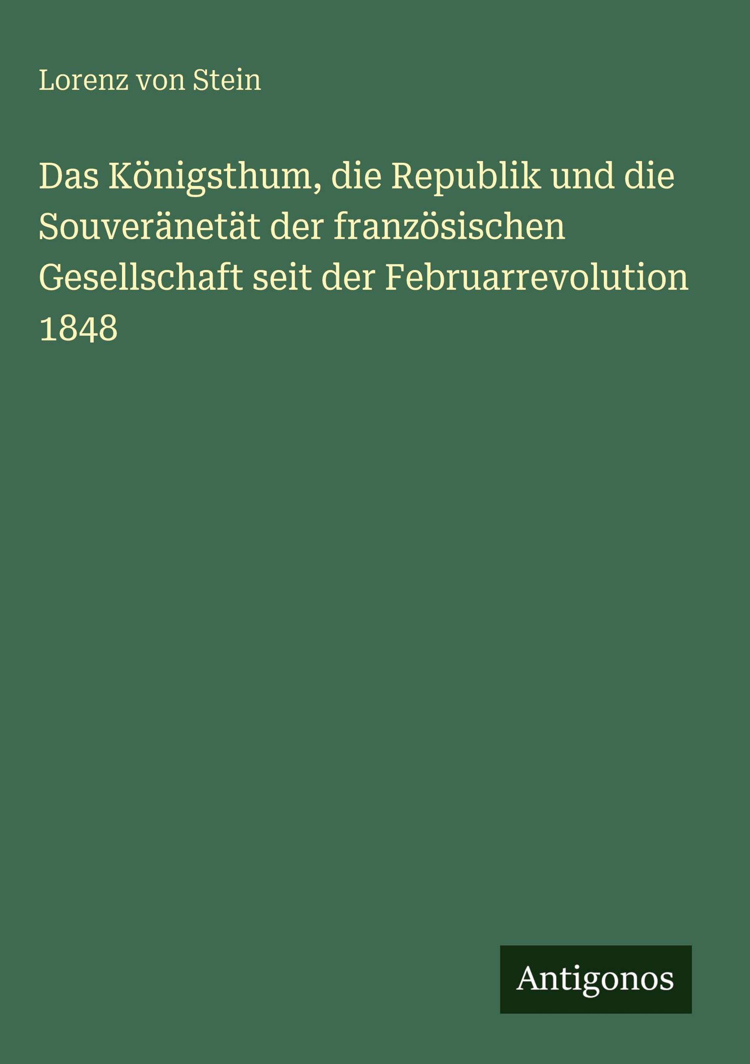 Der Artikel Lorenz Von Stein: Das Königsthum, die Republik und die Souveränetät der französischen Gesellschaft seit der Februarrevolution 1848 wurde in den Warenkorb gelegt.