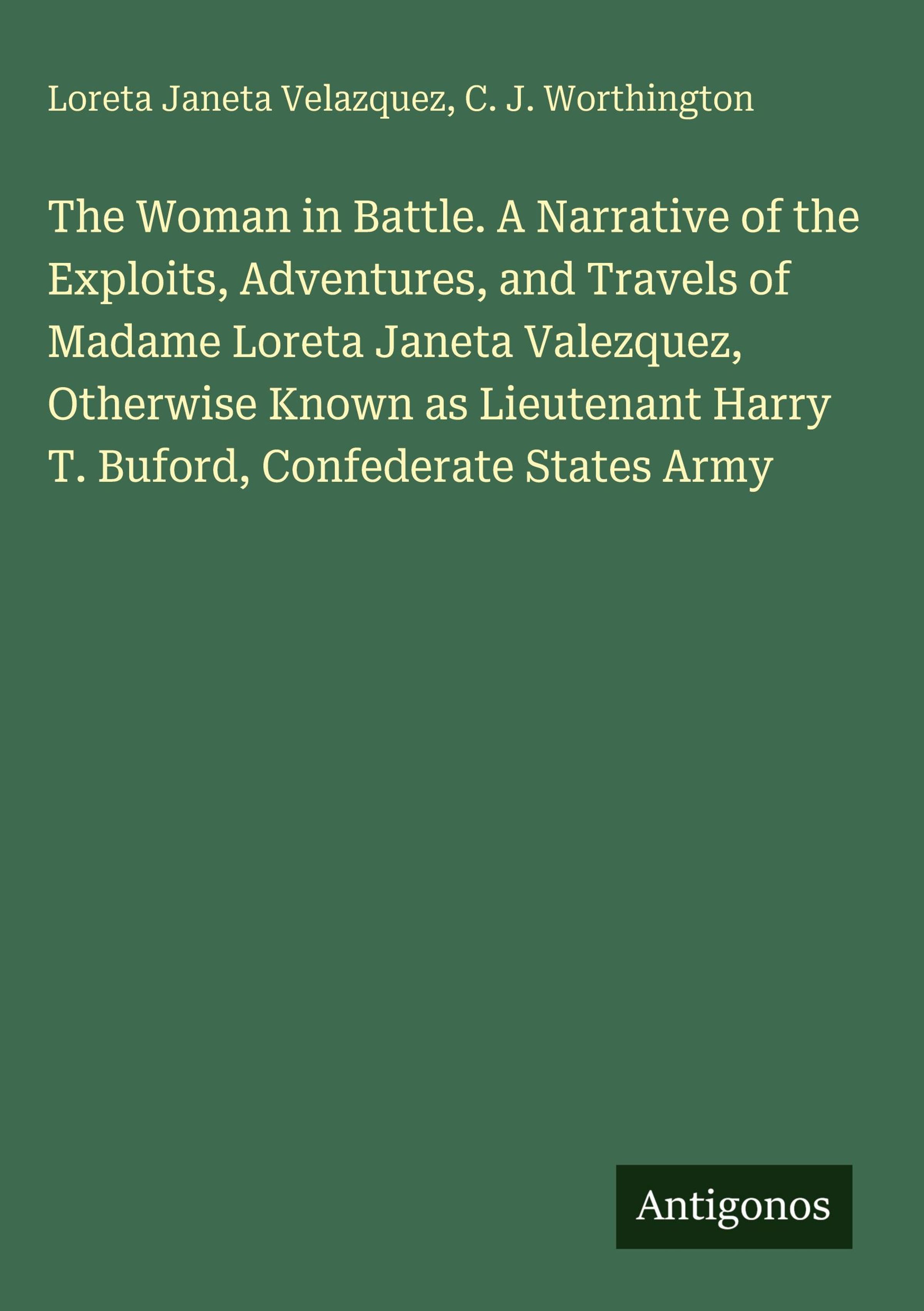 The Woman in Battle. A Narrative of the Exploits, Adventures, and Travels of Madame Loreta Janeta Valezquez, Otherwise Known as Lieutenant Harry T. Buford, Confederate States Army