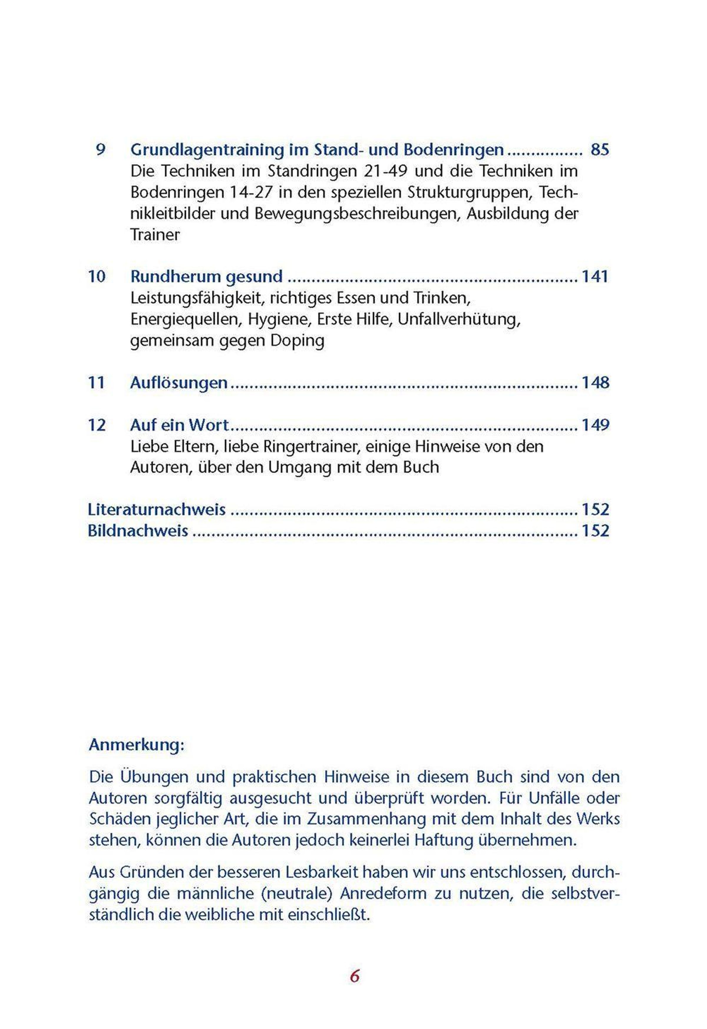 Auf die ersten Techniken der Grundausbildung im Standringen und Bodenringen wird aufgebaut und es gibt viele Hinweise für die neuen Techniken, zur richtigen Ausführung und Anwendung.