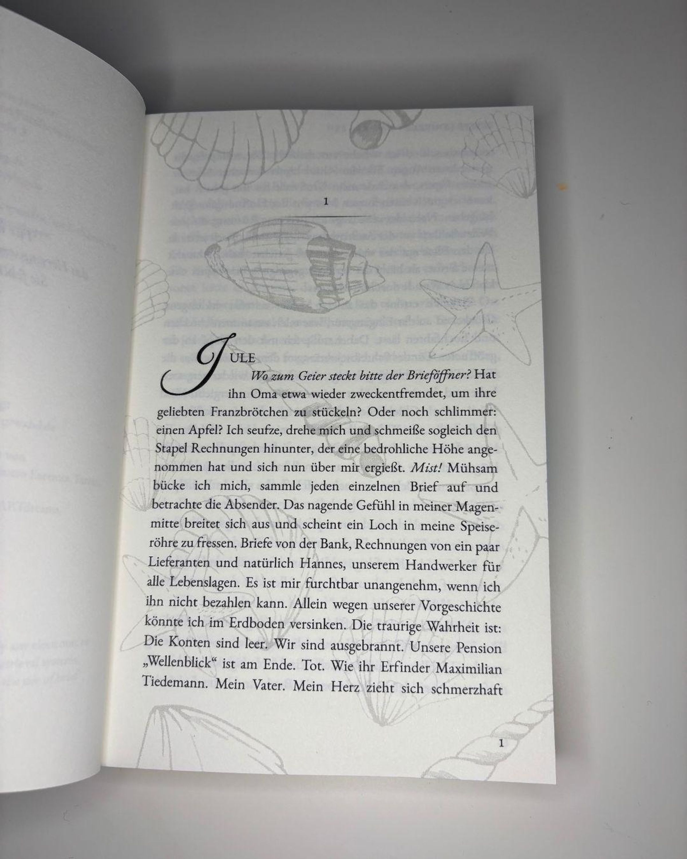 „Ups! In den Frosch verliebt“ von Lotte Janissen. Illustration: Paar am Strand, Muscheln, Seestern, Frosch, Segelboot., Buch
