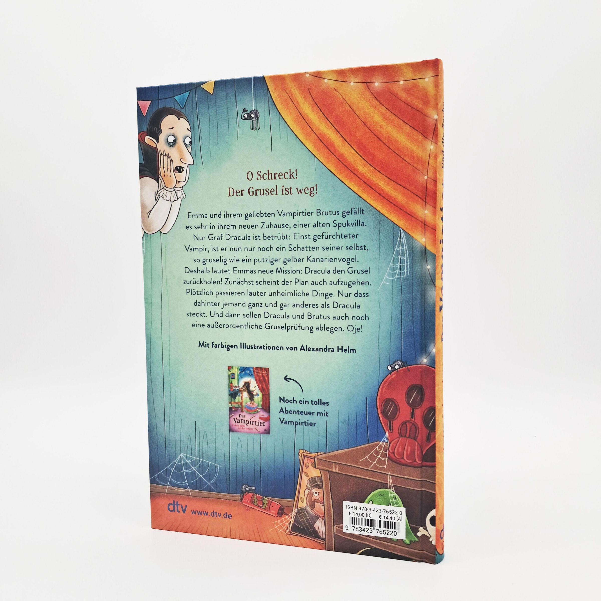 Emma und ihrem geliebten Vampirtier Brutus gefällt es sehr in ihrem neuen Zuhause, einer alten Spukvilla. Nur Graf Dracula ist betrübt: Einst gefürchteter Vampir, ist er nun nur noch ein Schatten seiner selbst, so gruselig wie ein putziger gelber Kanarienvogel. Deshalb lautet Emmas neue Mission: Dracula den Grusel zurückholen! Zunächst scheint der Plan auch aufzugehen. Plötzlich passieren lauter unheimliche Dinge. Nur dass dahinter jemand ganz und gar anderes als Dracula steckt. Und dann sollen Dracula und Brutus auch noch eine außerordentliche Gruselprüfung ablegen. Oje!