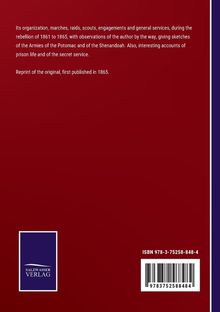 Reprint of the original, first published in 1865. Its organization, marches, raids, scouts, engagements and general services, during the rebellion of 1861 to 1865, with observations of the author by the way, giving sketches of the Armies of the Potomac and of the Shenandoah. Also, interesting accounts of prison life and of the secret service.