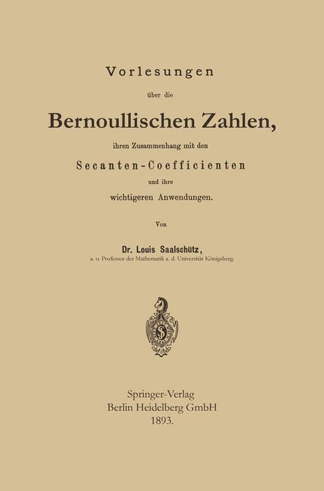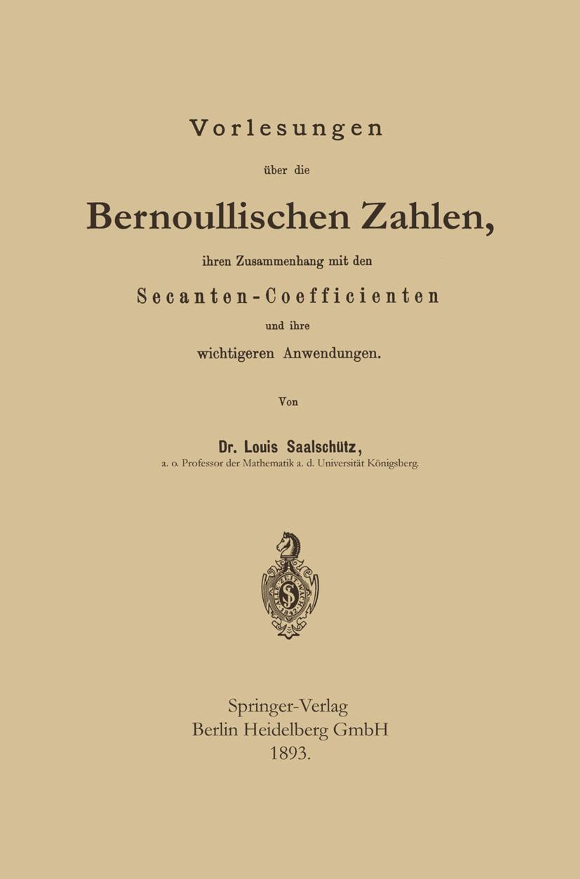 Vorlesungen über die Bernoullischen Zahlen, ihren Zusammenhang mit den Secanten - Coefficienten und ihre wichtigeren Anwendungen
