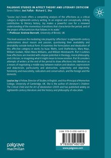 This book assesses the mediating role played by 'affections' in eighteenth-century contestations about reason and passion, questioning their availability and desirability outside textual form. It examines the formulation and idealization of this affective category in works by Isaac Watts, Lord Shaftesbury, Mary Hays, William Godwin, Helen Maria Williams, and William Wordsworth. Part I outlines how affections are invested with utopian potential in theology, moral philosophy, and criticism, re-imagining what it might mean to know emotion. Part II considers attempts of writers at the end of the period to draw affections into literature as a means of negotiating a middle way between realism and idealism, expressivism and didacticism, particularity and abstraction, subjectivity and objectivity, femininity and masculinity, radicalism and conservatism, and the foreign and the domestic.