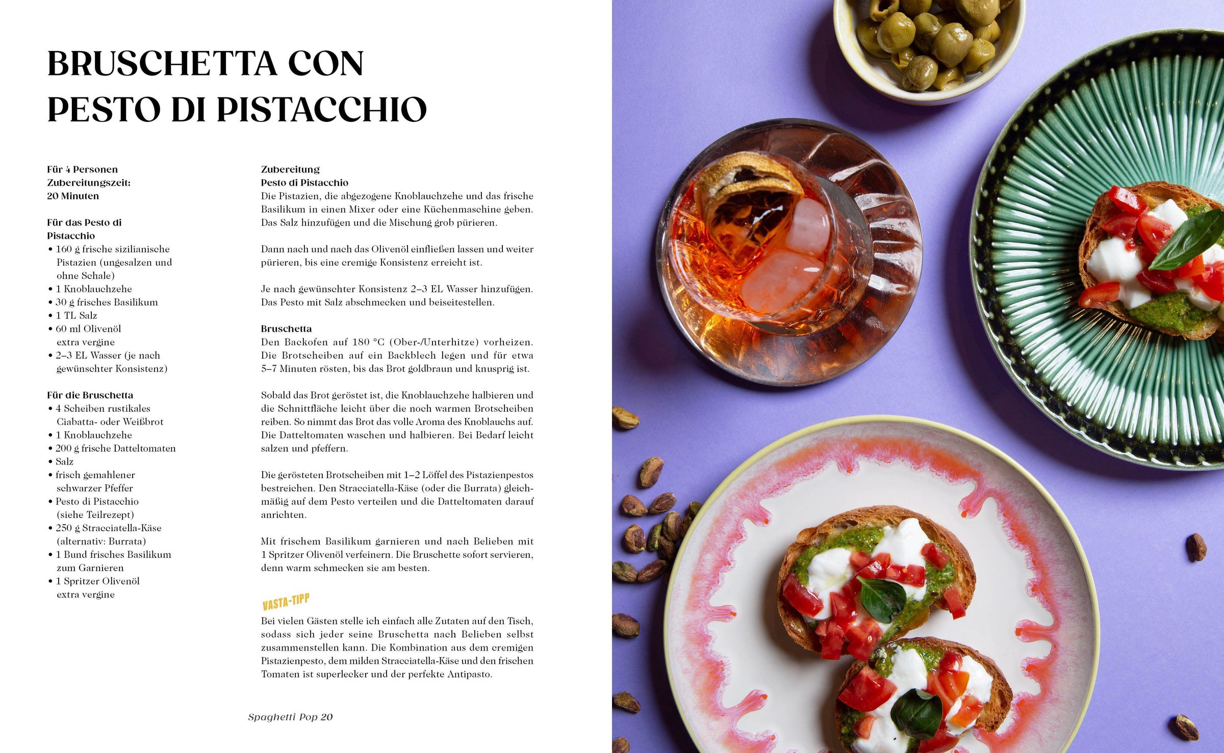 In ihrem Kochbuch "Spaghetti-Pop" teilt Luca ihre Leidenschaft fürs Kochenmit uns. Bei ihr gilt: Erlaubt ist, was schmeckt. Cremige Pasta al Pistacchio, eine echte Carbonara, selbstgemachte Ravioli mit Ricotta, Spaghetti al Limone, frische Vongole oder ein himmlisches Pistacchio-mi-su - Lucas "piatti" sind einfach "fantastico" und super unkompliziert nachzukochen. Ihre Sammlung von rund 50 Rezepten ist über Jahre entstanden, mal typisch sizilianisch, mal inspiriert aus Mittelitalien, oft mit einem internationalen Twist.