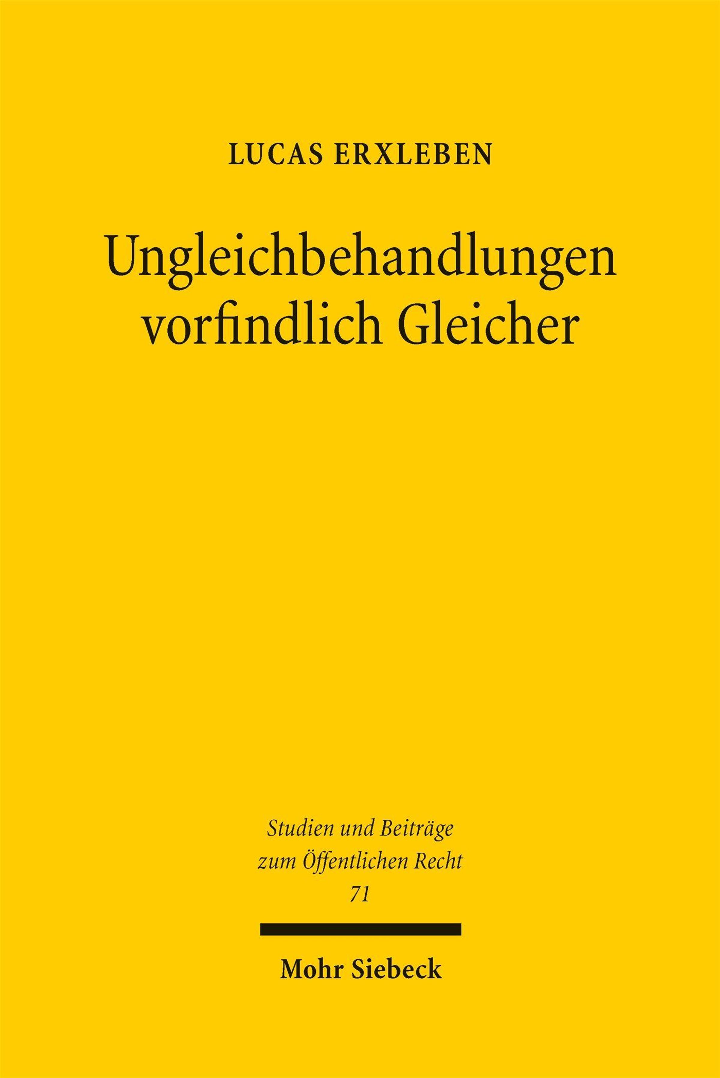 If the principle of equality before the law actually meant that equals were to be treated equally without exception, then - to give just one example - everyone in need of help in certain triage situations would have to die because there were not enough resources to save everyone. Lucas Erxleben's study reveals the conditions under which the German state may treat equals unequally.